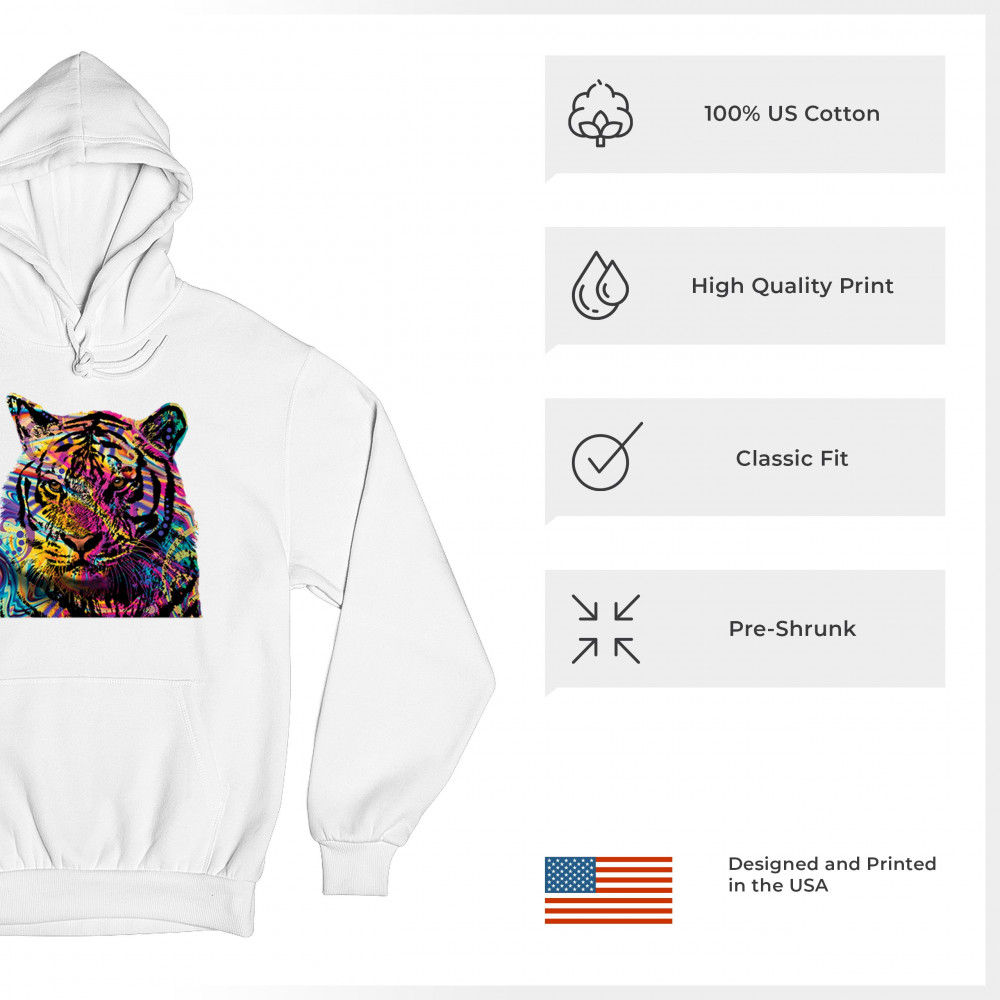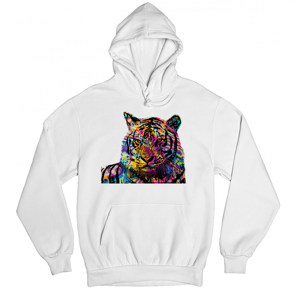 DEAN RUSSO COLORFUL NEON SIBERIAN TIGER sweatshirt wild big cat hoodie white