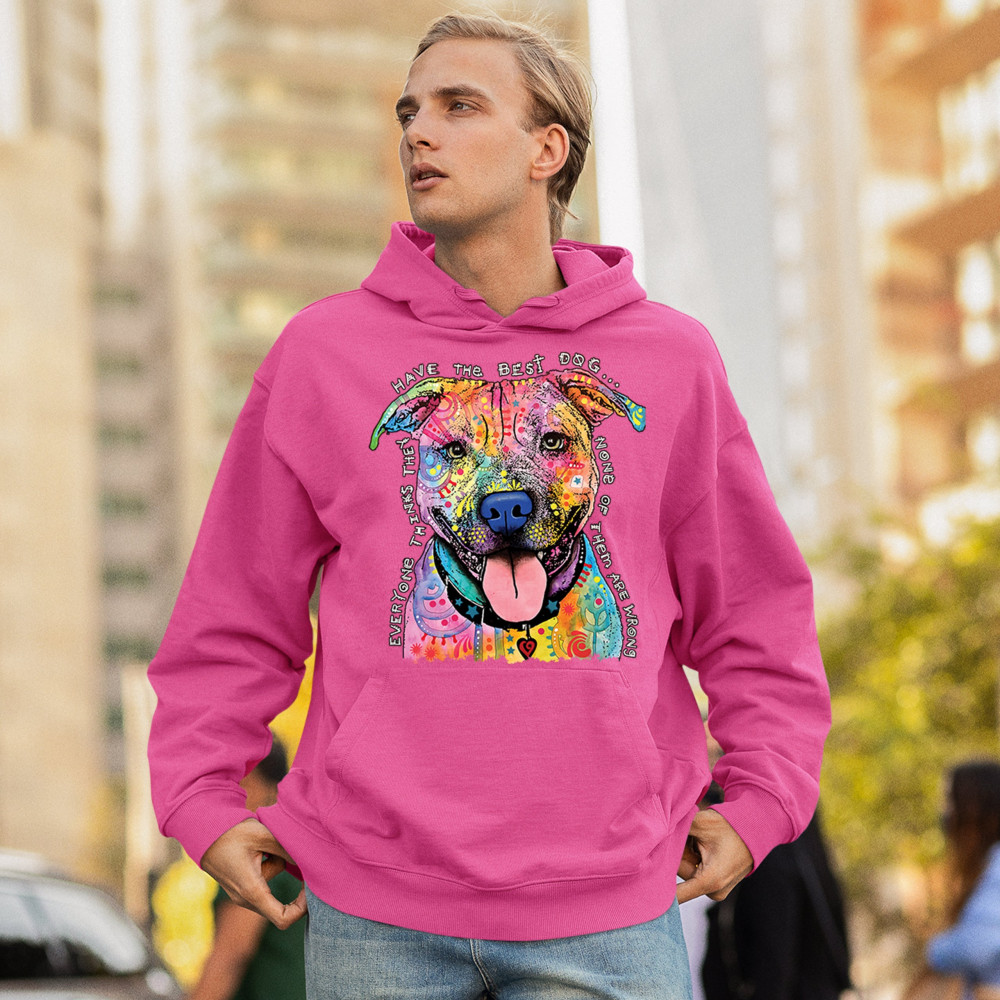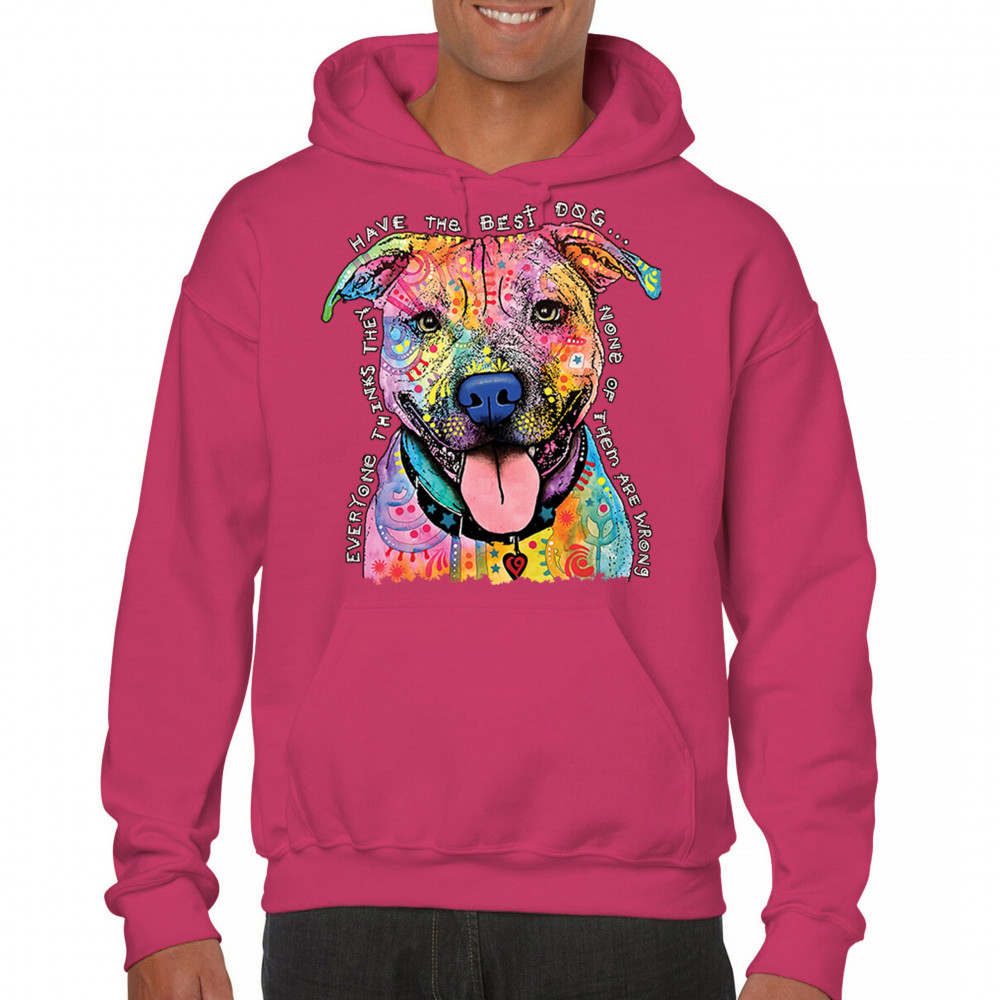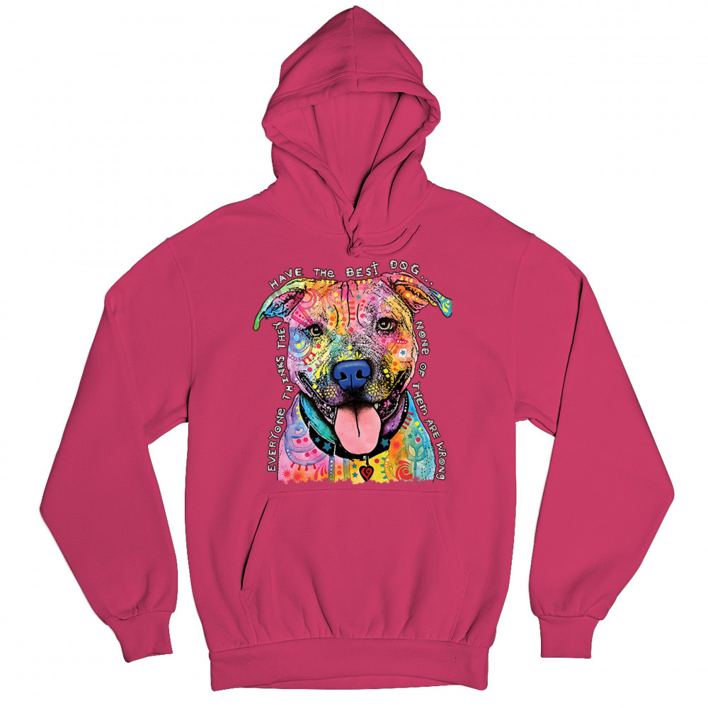 DEAN RUSSO COLORFUL PIT BULL sweatshirt everyone has best dogs hoodie pink