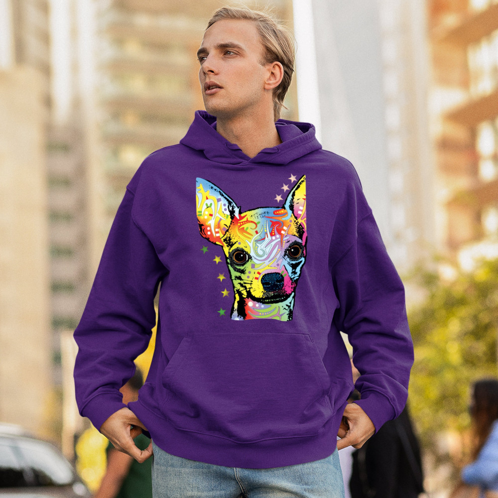 DEAN RUSSO CUTE CHIHUAHUA sweatshirt neon colorful small dog pet hoodie purple