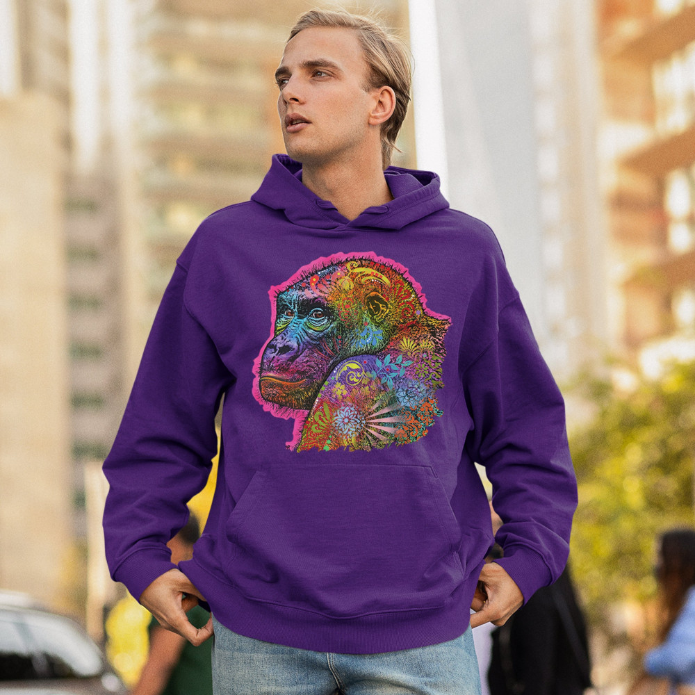 DEAN RUSSO CUTE GORILLA sweatshirt colorful neon silverback ape art hoodie purple