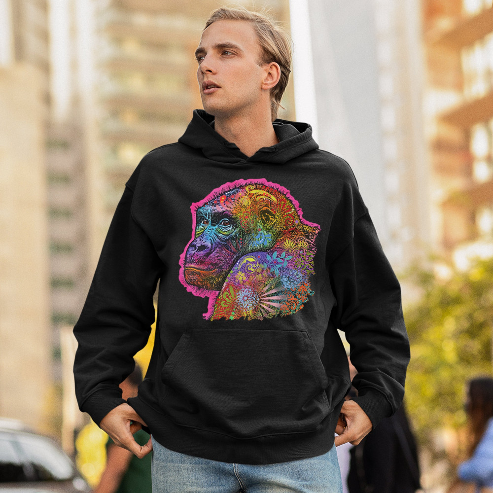 DEAN RUSSO CUTE GORILLA sweatshirt colorful neon silverback ape art hoodie black