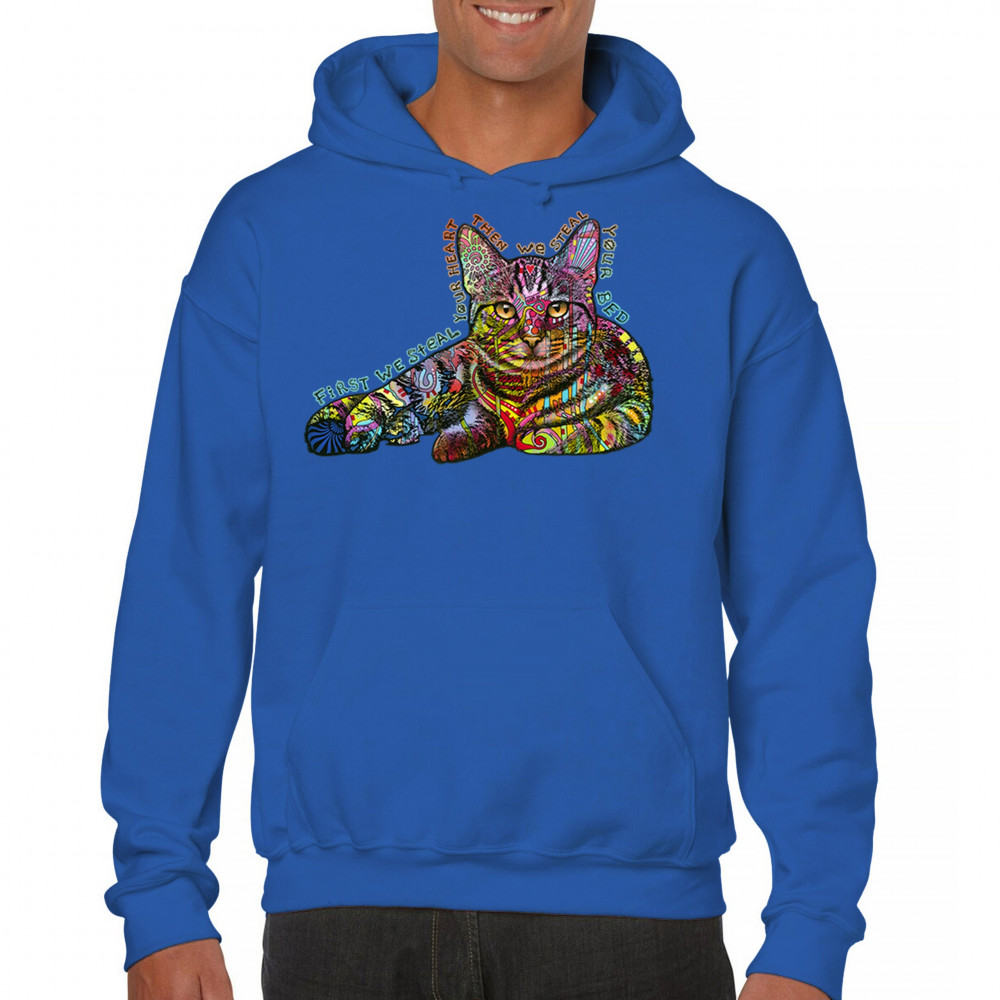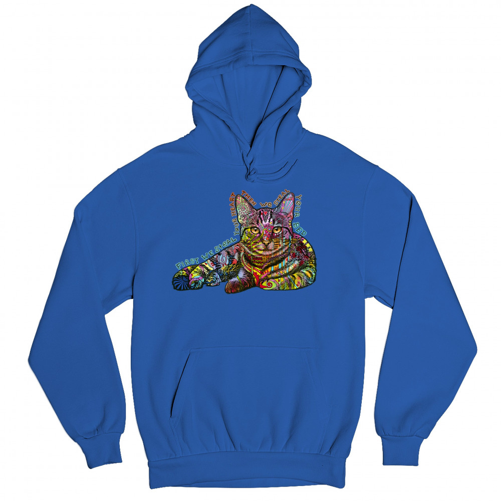 DEAN RUSSO CUTE NEON CAT sweatshirt first we steal your heart kitten hoodie royal blue