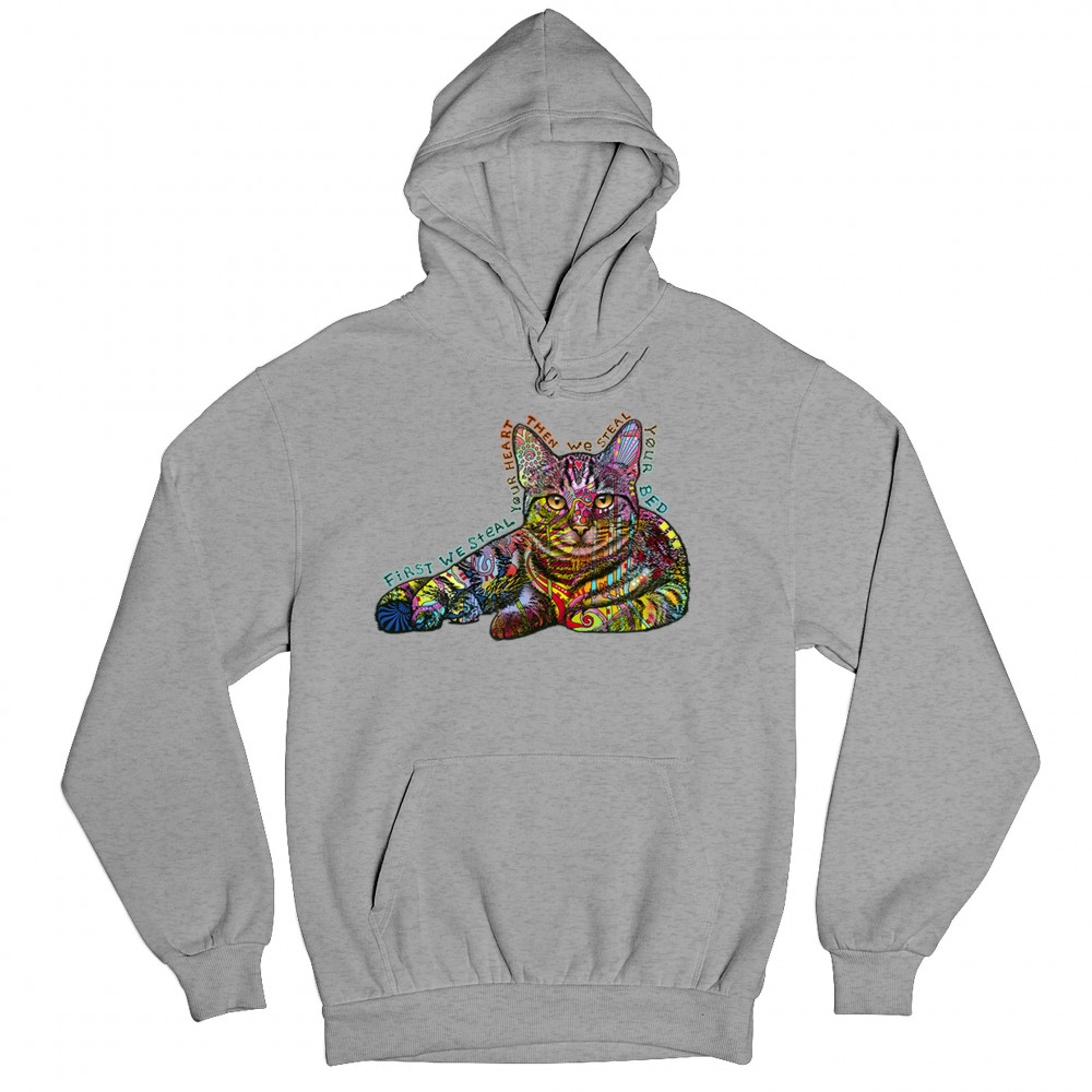 DEAN RUSSO CUTE NEON CAT sweatshirt first we steal your heart kitten hoodie gray