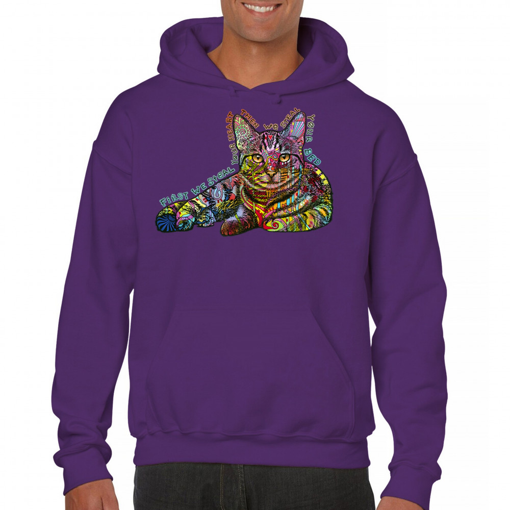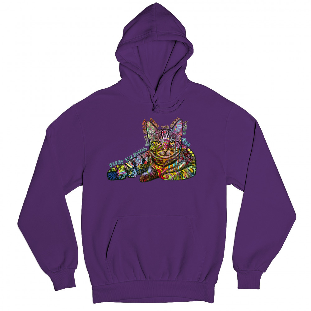 DEAN RUSSO CUTE NEON CAT sweatshirt first we steal your heart kitten hoodie purple