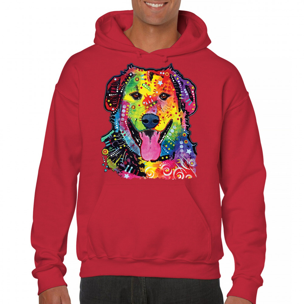 DEAN RUSSO CUTE NEON DOG sweatshirt rescue adopt a pet colorful pet hoodie red