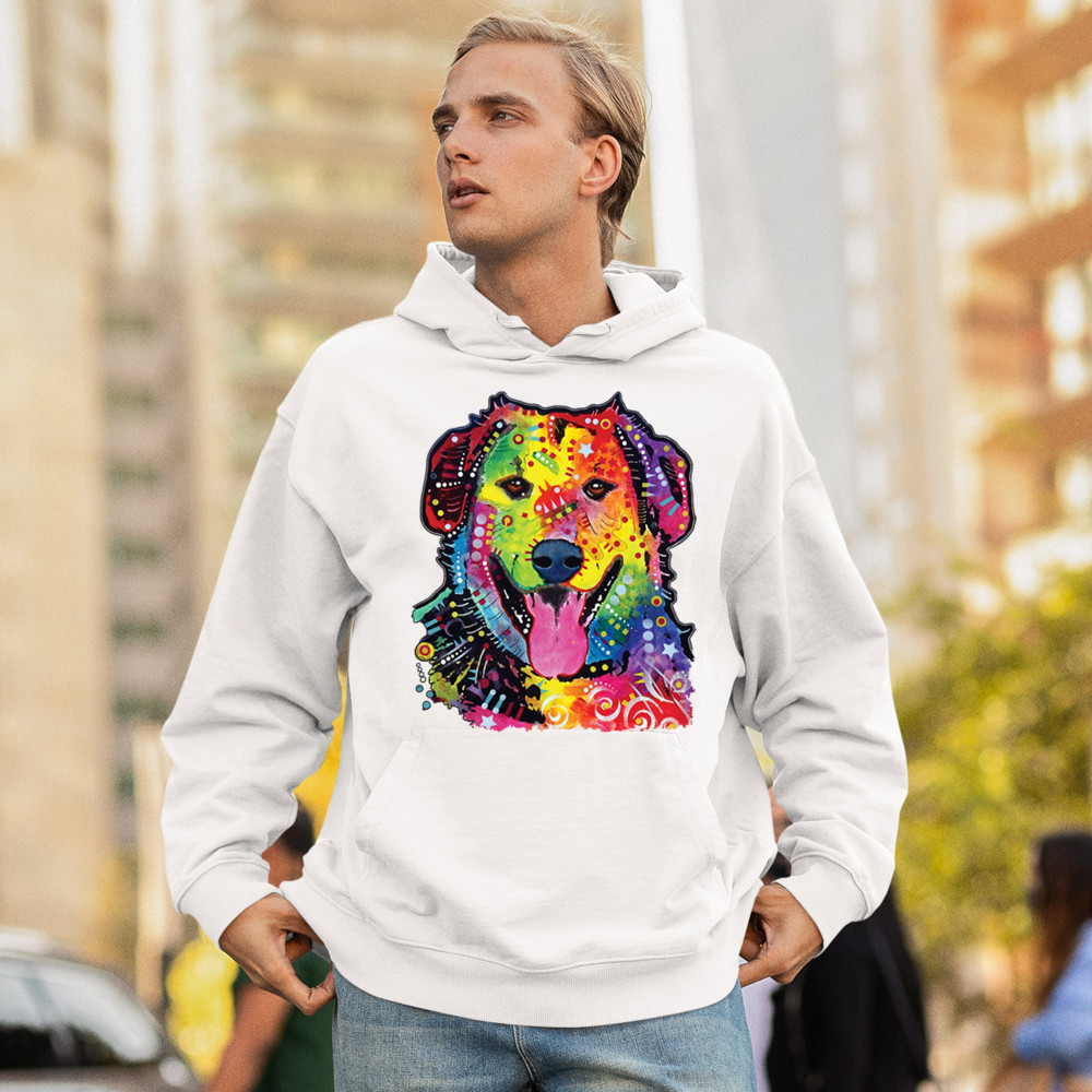DEAN RUSSO CUTE NEON DOG sweatshirt rescue adopt a pet colorful pet hoodie white