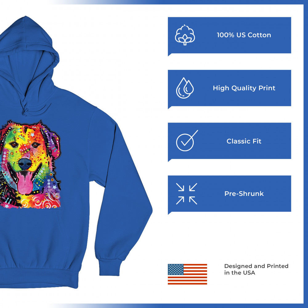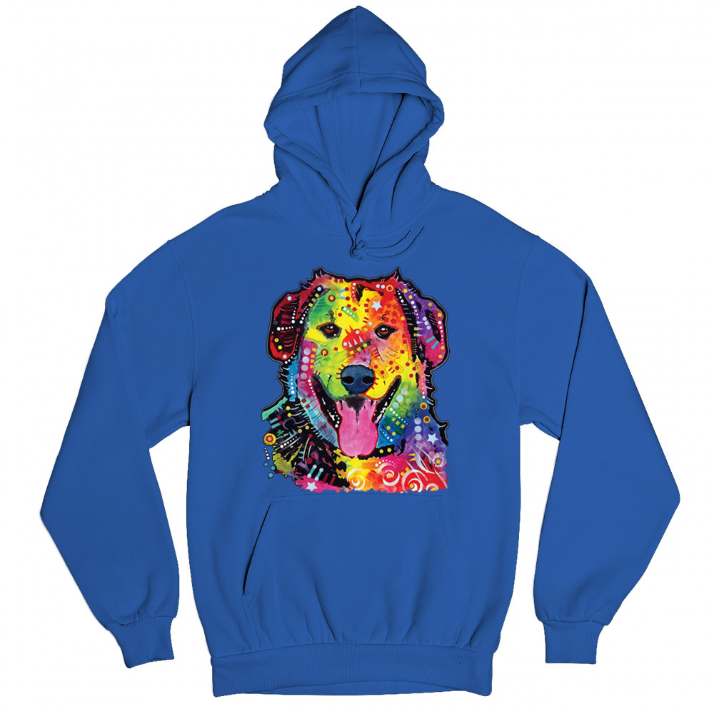 DEAN RUSSO CUTE NEON DOG sweatshirt rescue adopt a pet colorful pet hoodie royal blue