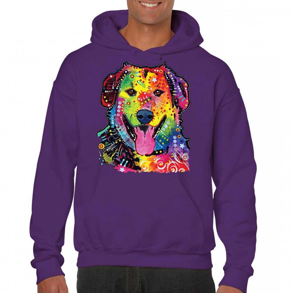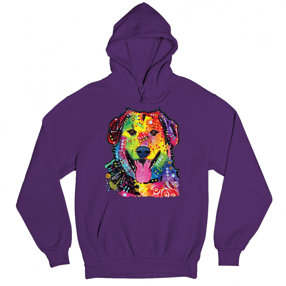 DEAN RUSSO CUTE NEON DOG sweatshirt rescue adopt a pet colorful pet hoodie purple