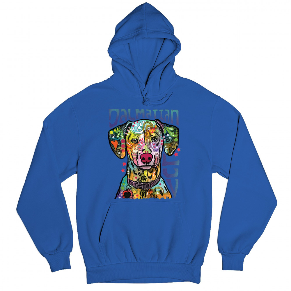 DEAN RUSSO DALMATIAN LUV COLORFUL DOG sweatshirt neon puppy lover hoodie royal blue