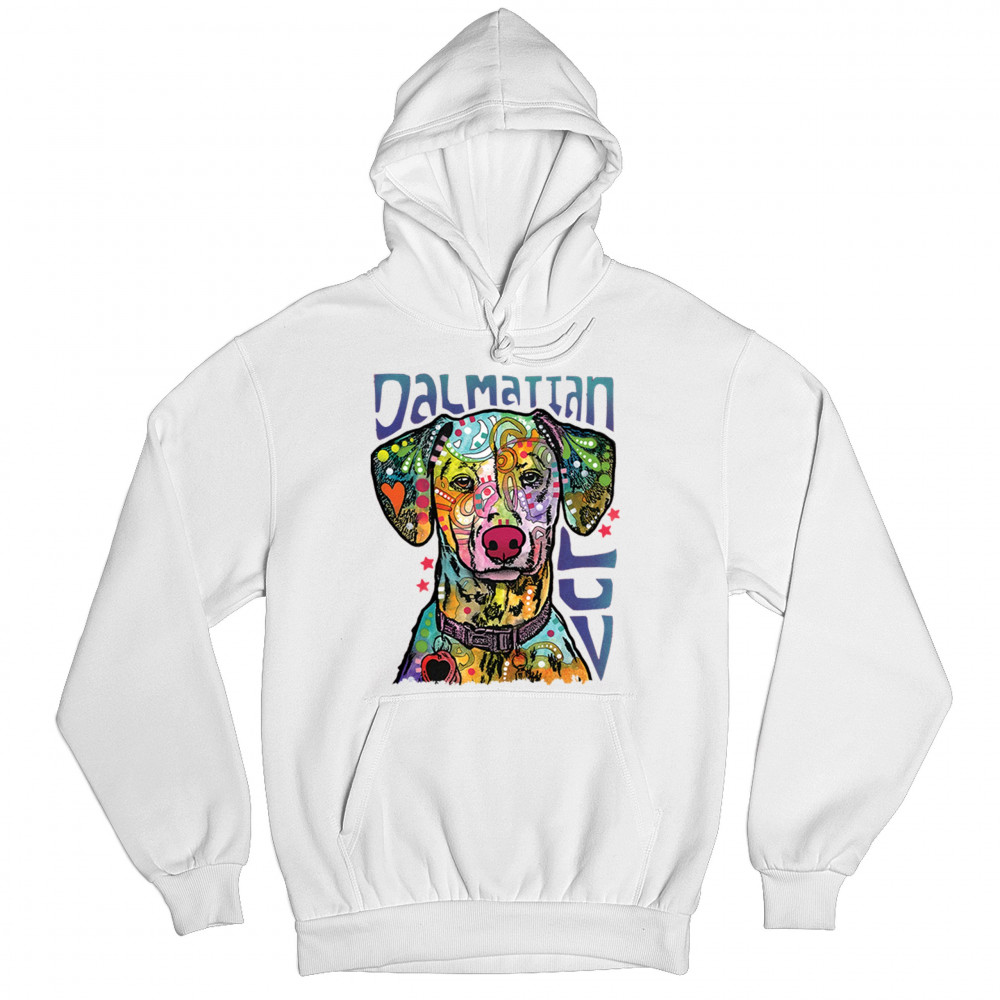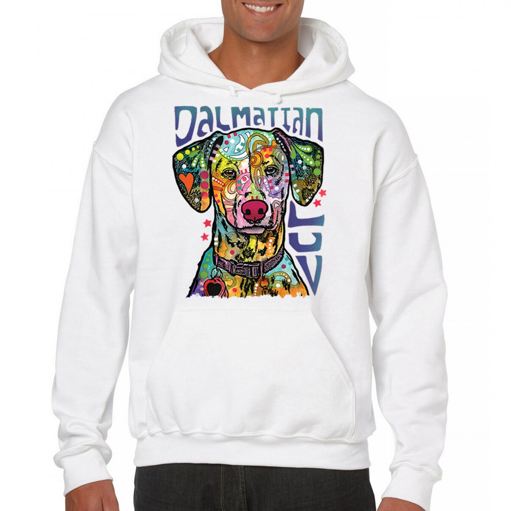 DEAN RUSSO DALMATIAN LUV COLORFUL DOG sweatshirt neon puppy lover hoodie white