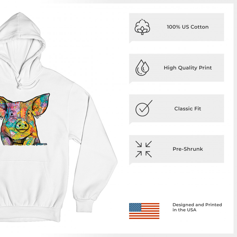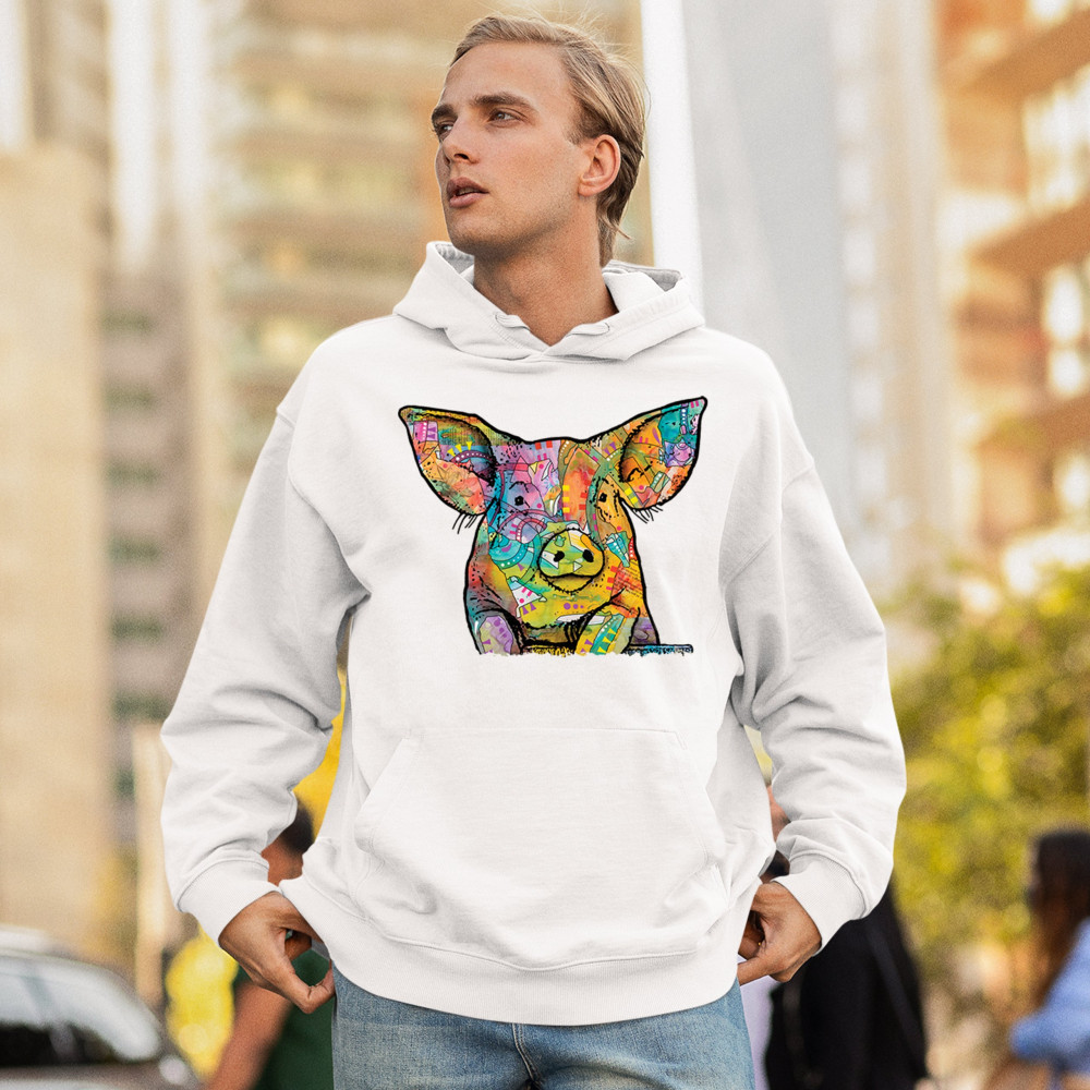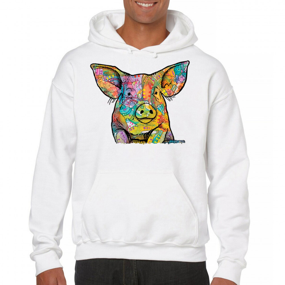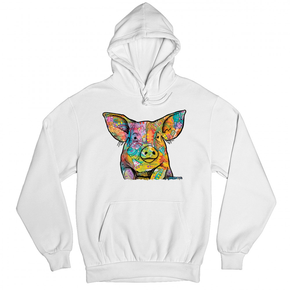 DEAN RUSSO FUNNY CUTE PIG sweatshirt farm piglet lover barn hoodie white