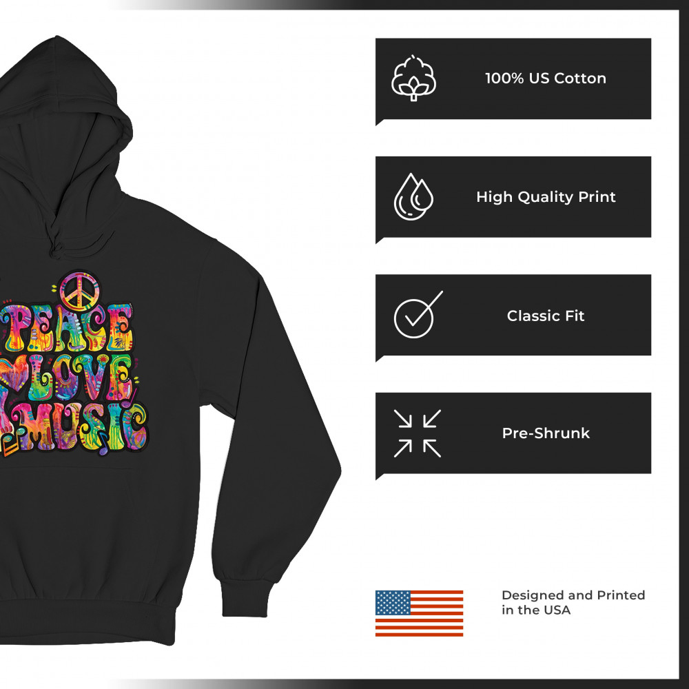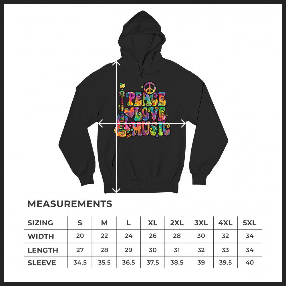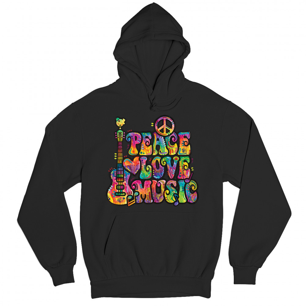 DEAN RUSSO PEACE LOVE MUSIC sweatshirt guitar happy good vibe hoodie black