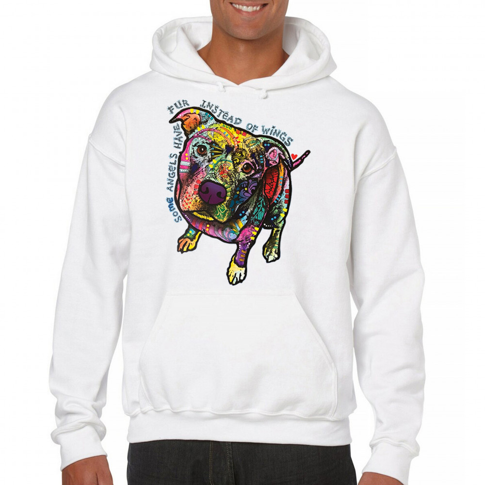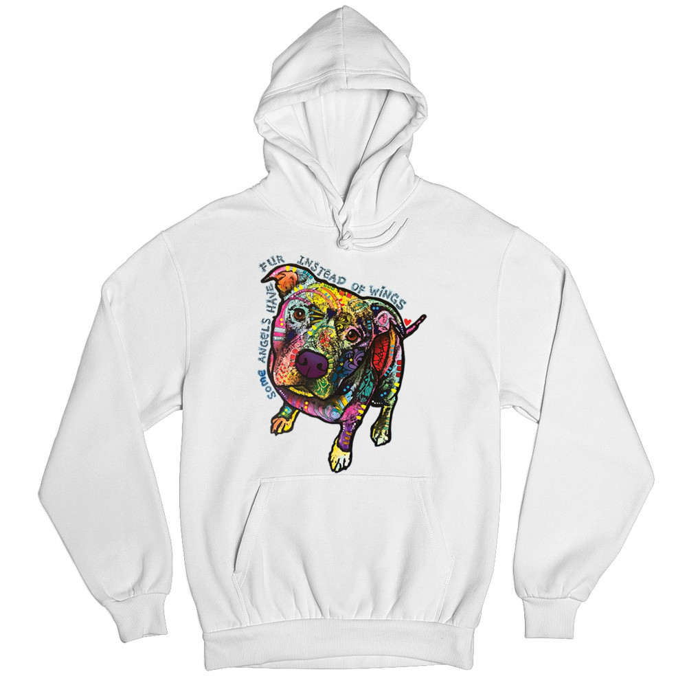 DEAN RUSSO PIT BULL sweatshirt some angels have fur instead of wings hoodie white