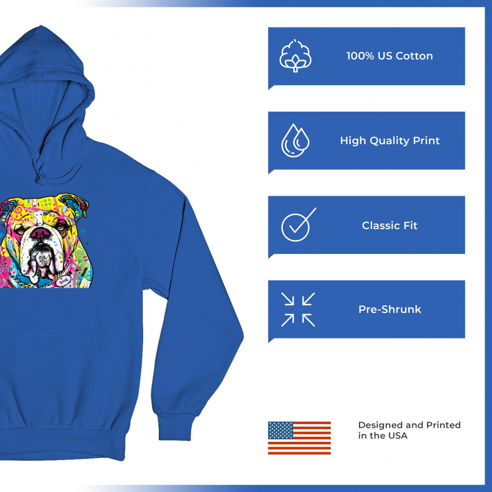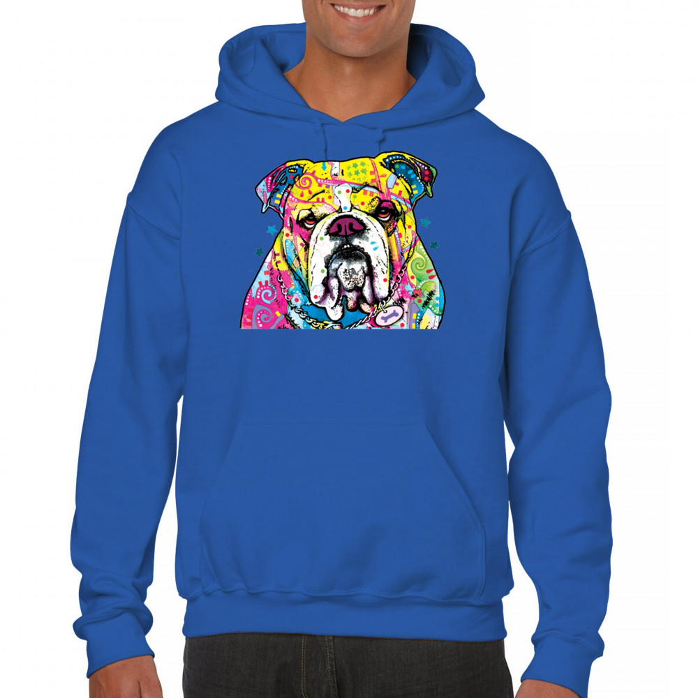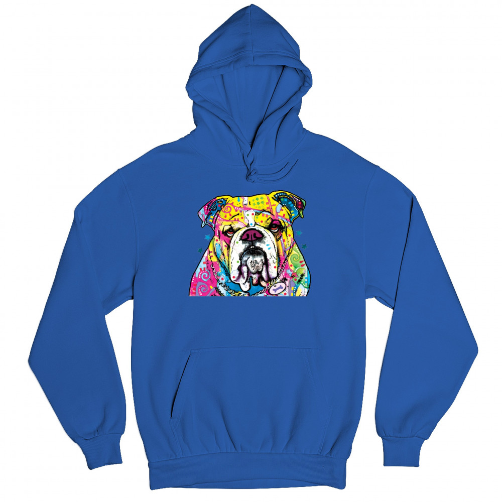 DEAN RUSSO SERIOUS BULLDOG sweatshirt colorful dog best friend hoodie royal blue