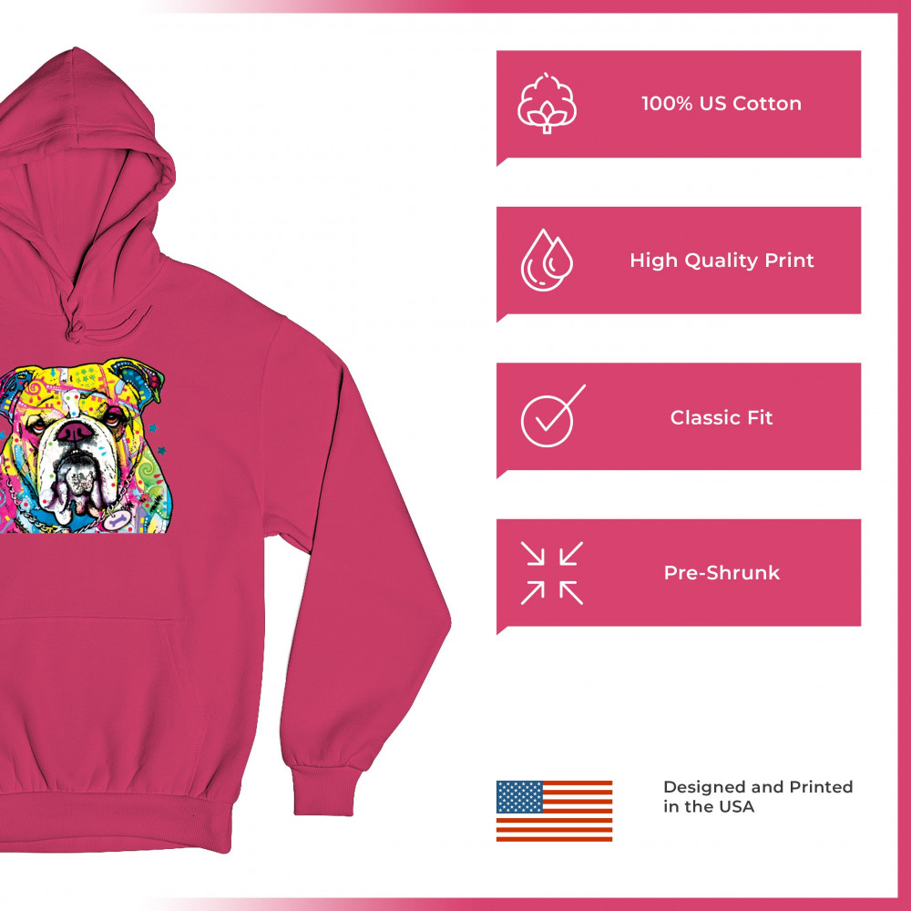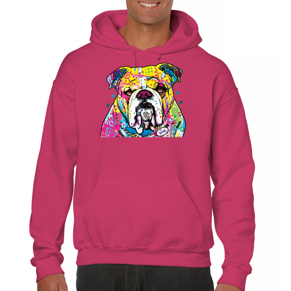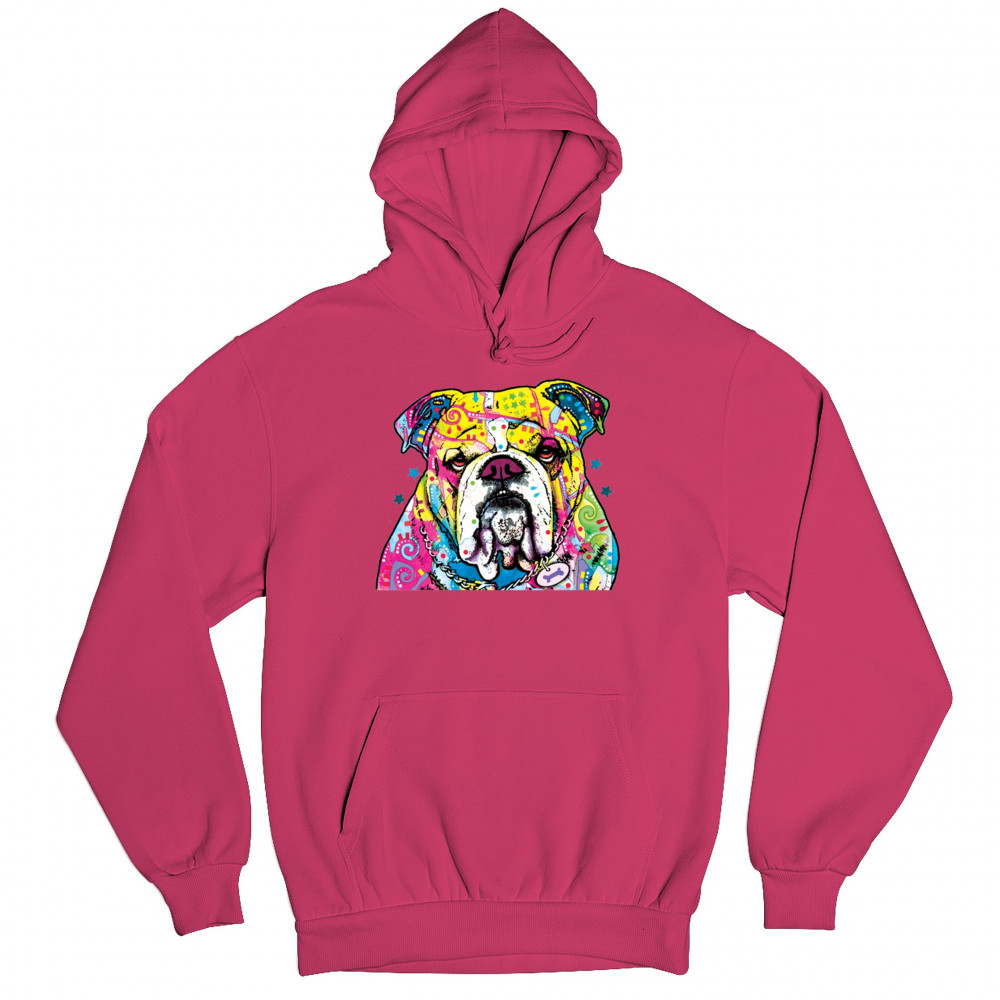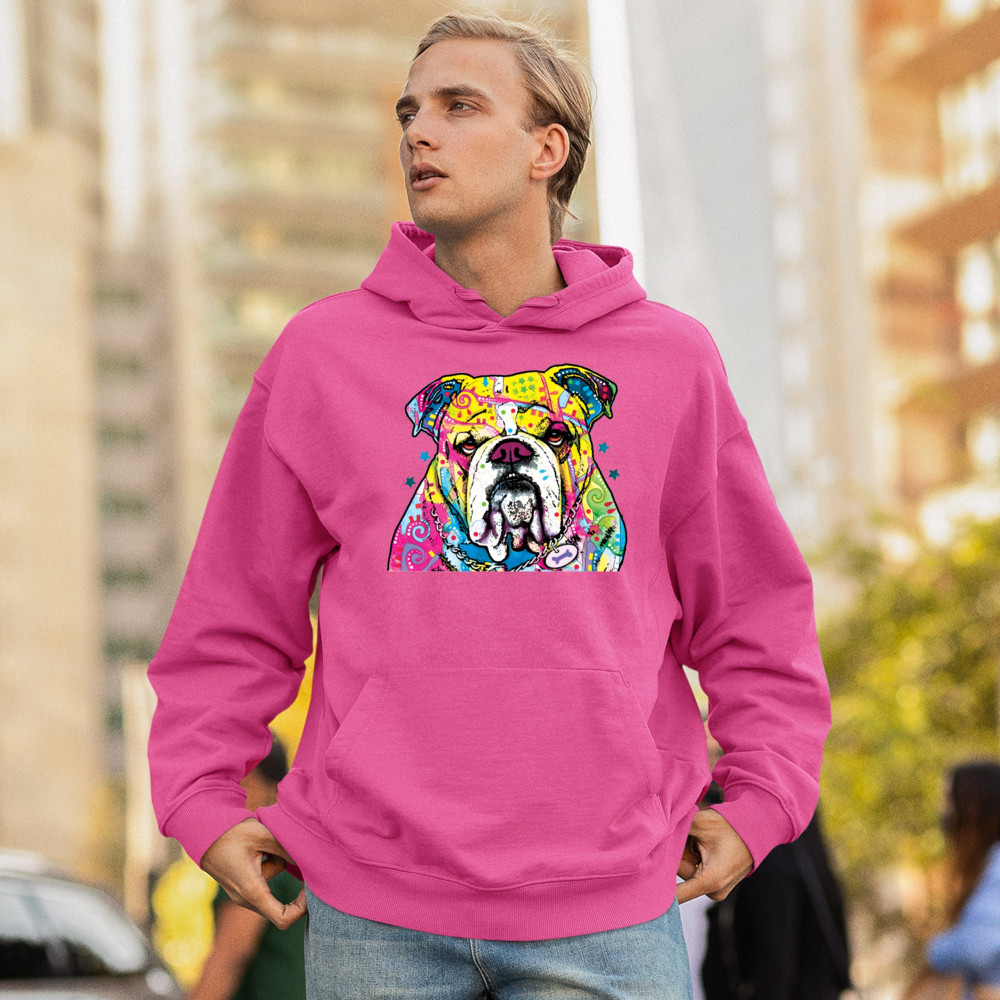 DEAN RUSSO SERIOUS BULLDOG sweatshirt colorful dog best friend hoodie pink
