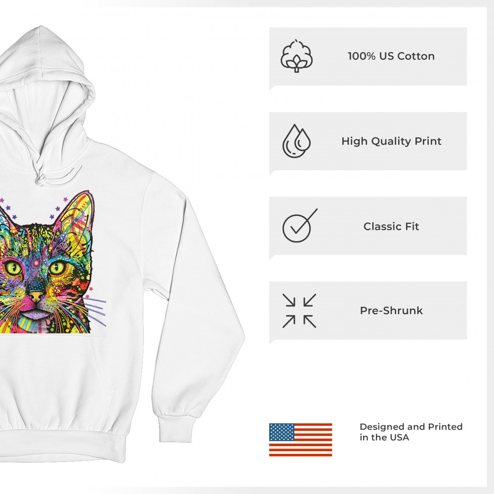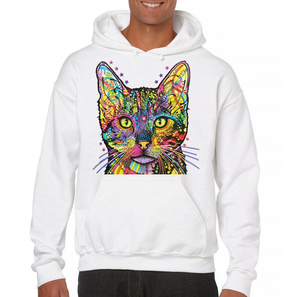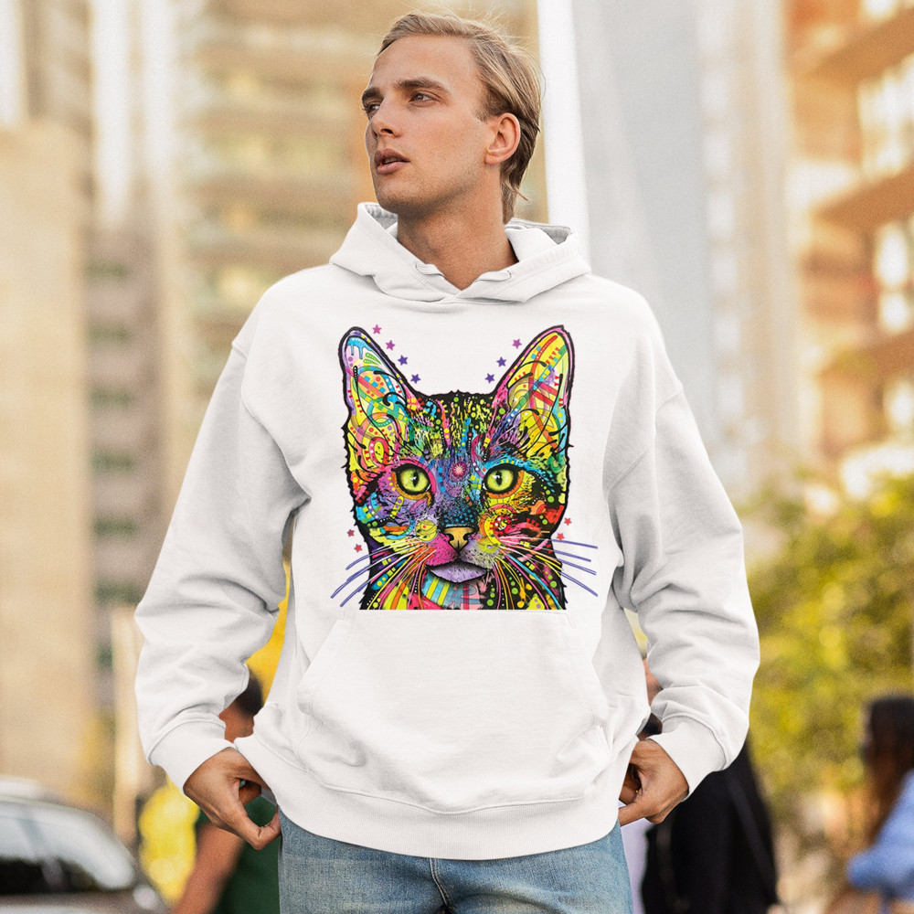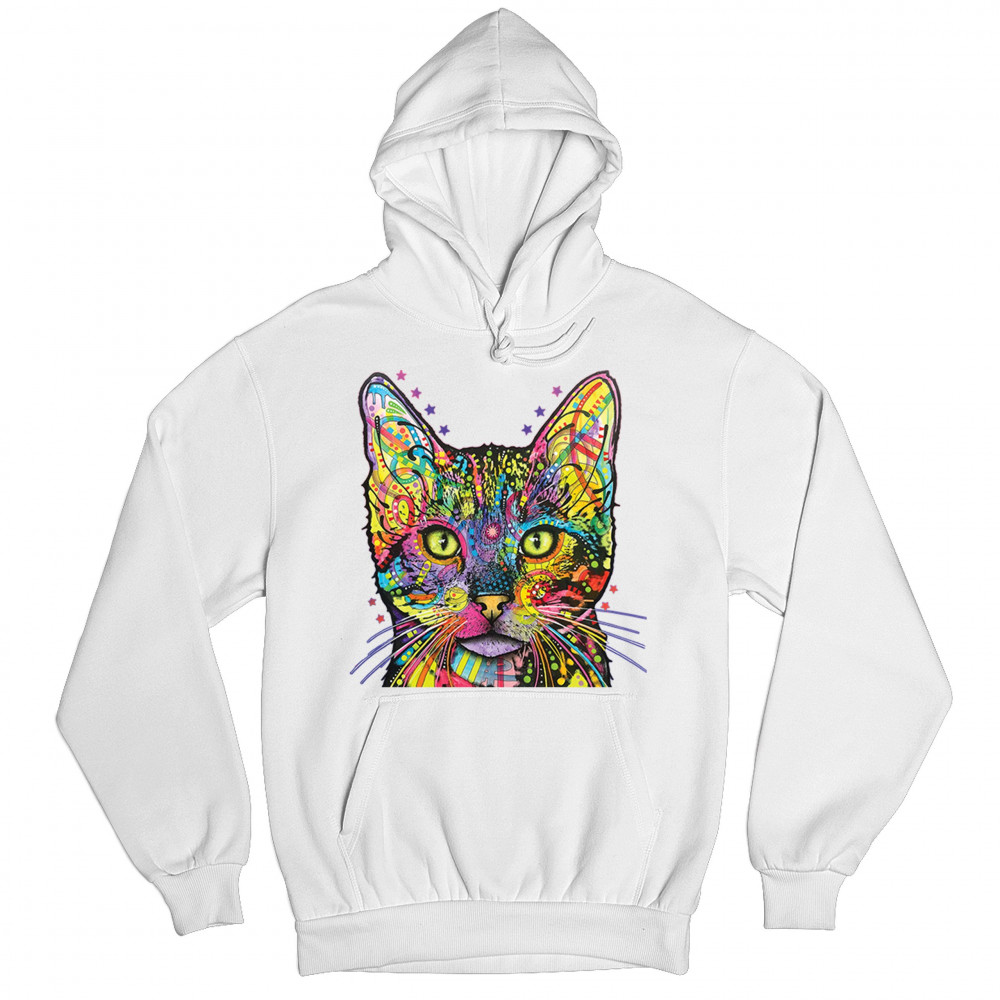 DEAN RUSSO SHIVA CAT STARE sweatshirt neon mosaic colorful kitten eyes hoodie white