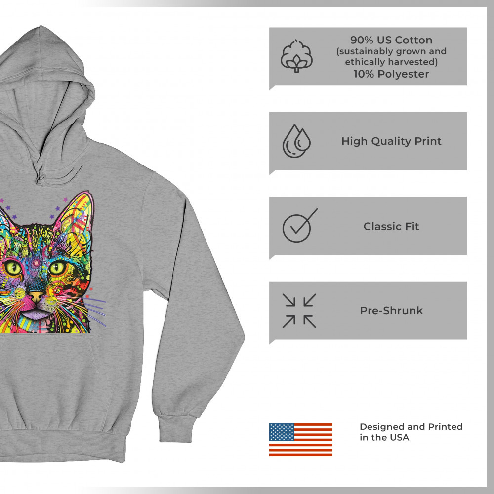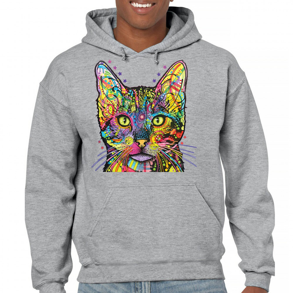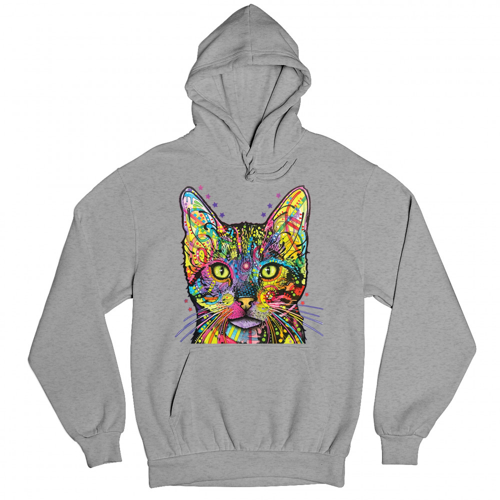 DEAN RUSSO SHIVA CAT STARE sweatshirt neon mosaic colorful kitten eyes hoodie gray