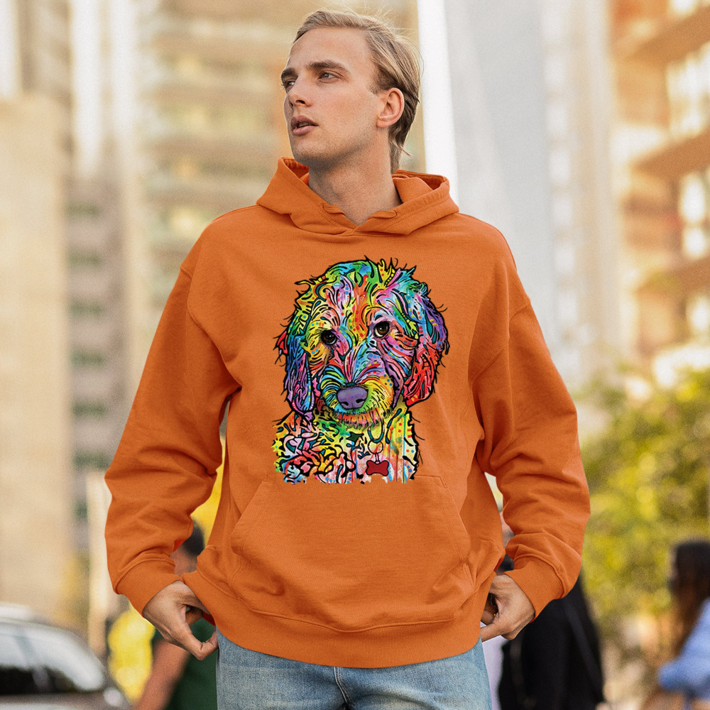 DEAN RUSSO SWEET POODLE sweatshirt dog pattern puppy adopt pet hoodie orange