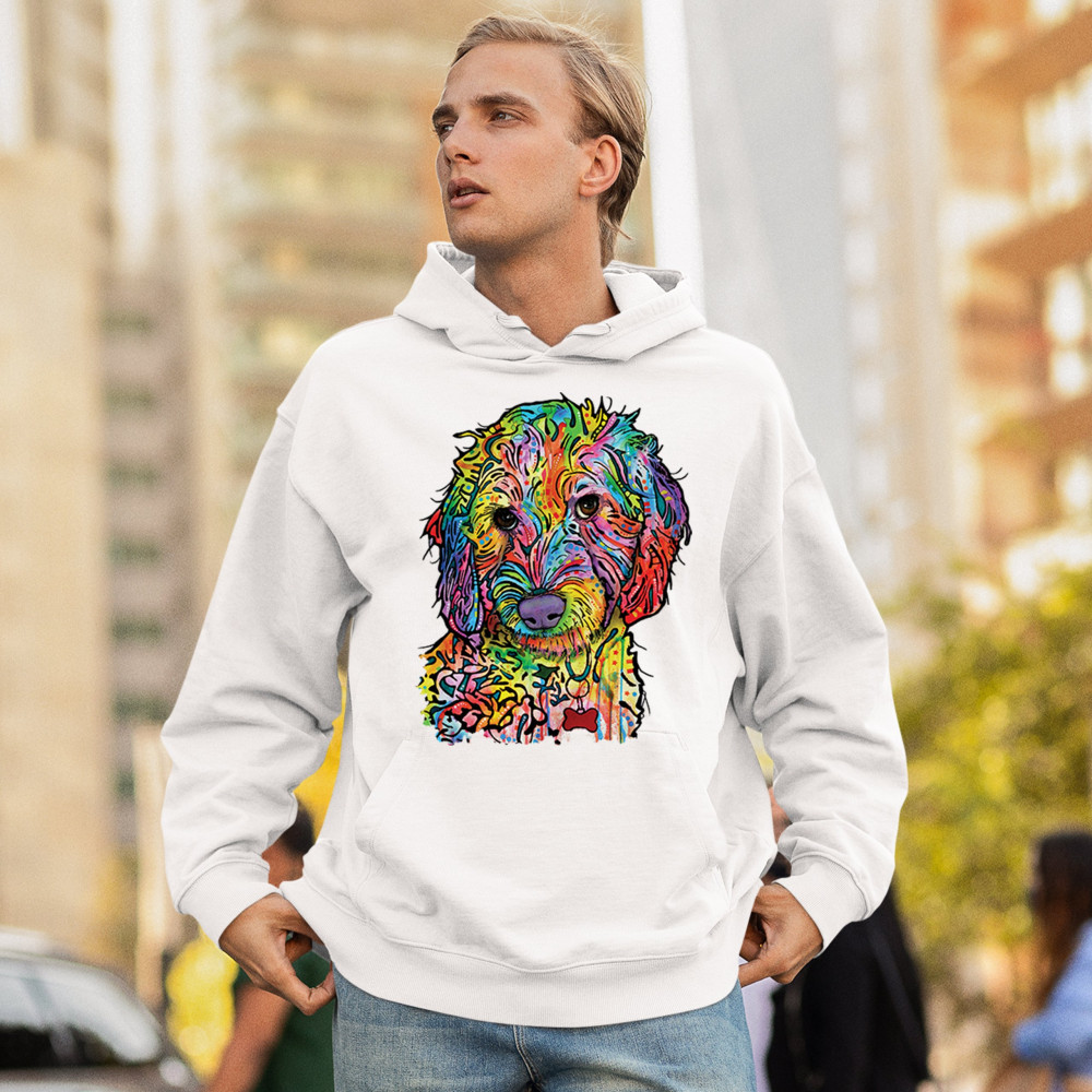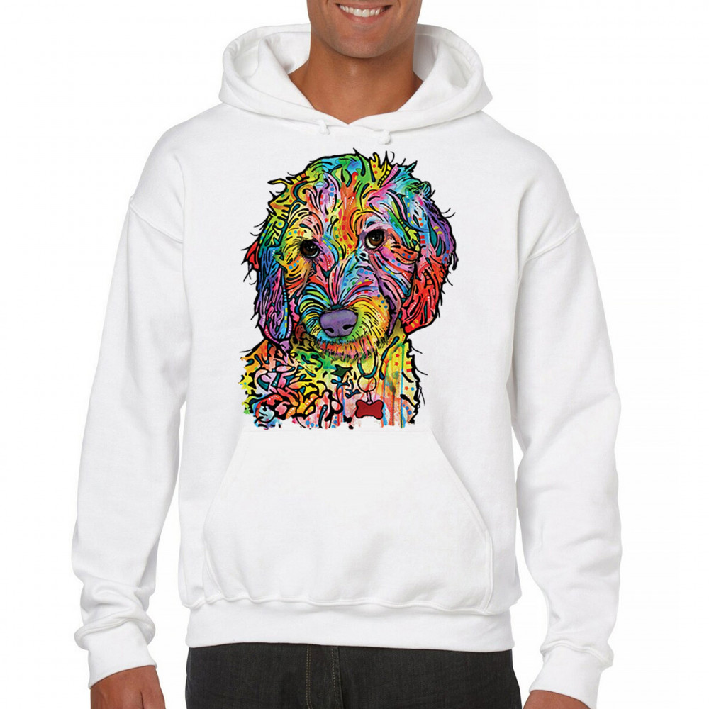 DEAN RUSSO SWEET POODLE sweatshirt dog pattern puppy adopt pet hoodie white