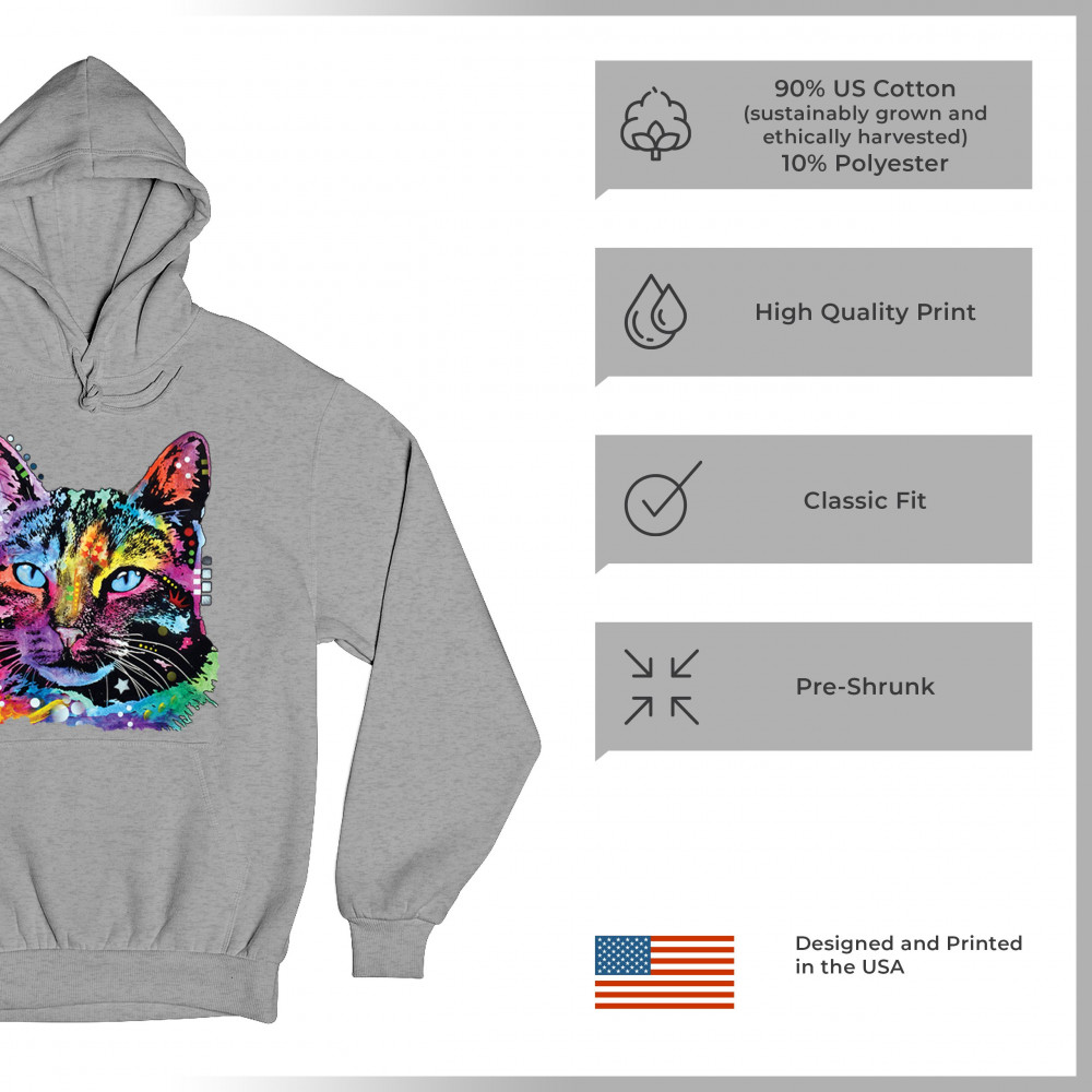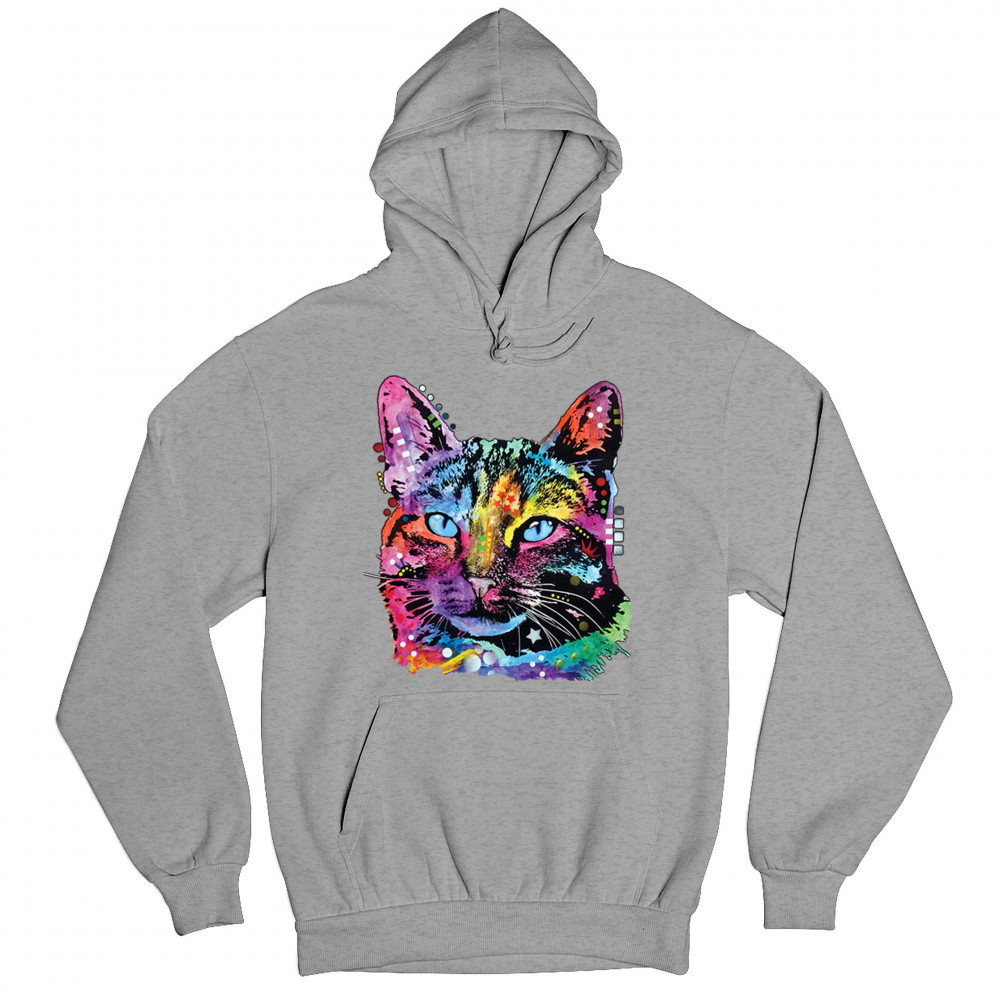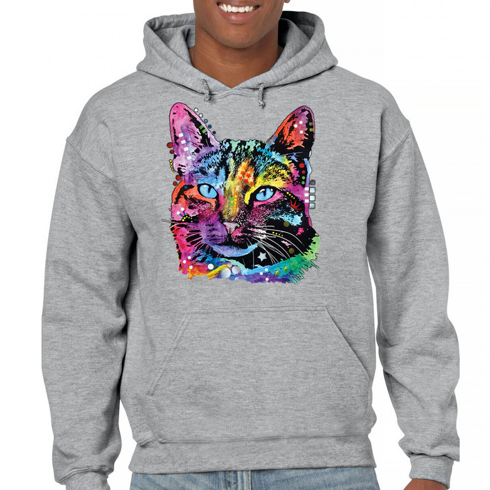 DEAN RUSSO THOUGHTFUL CAT sweatshirt colorful pet kitten eyes hoodie gray