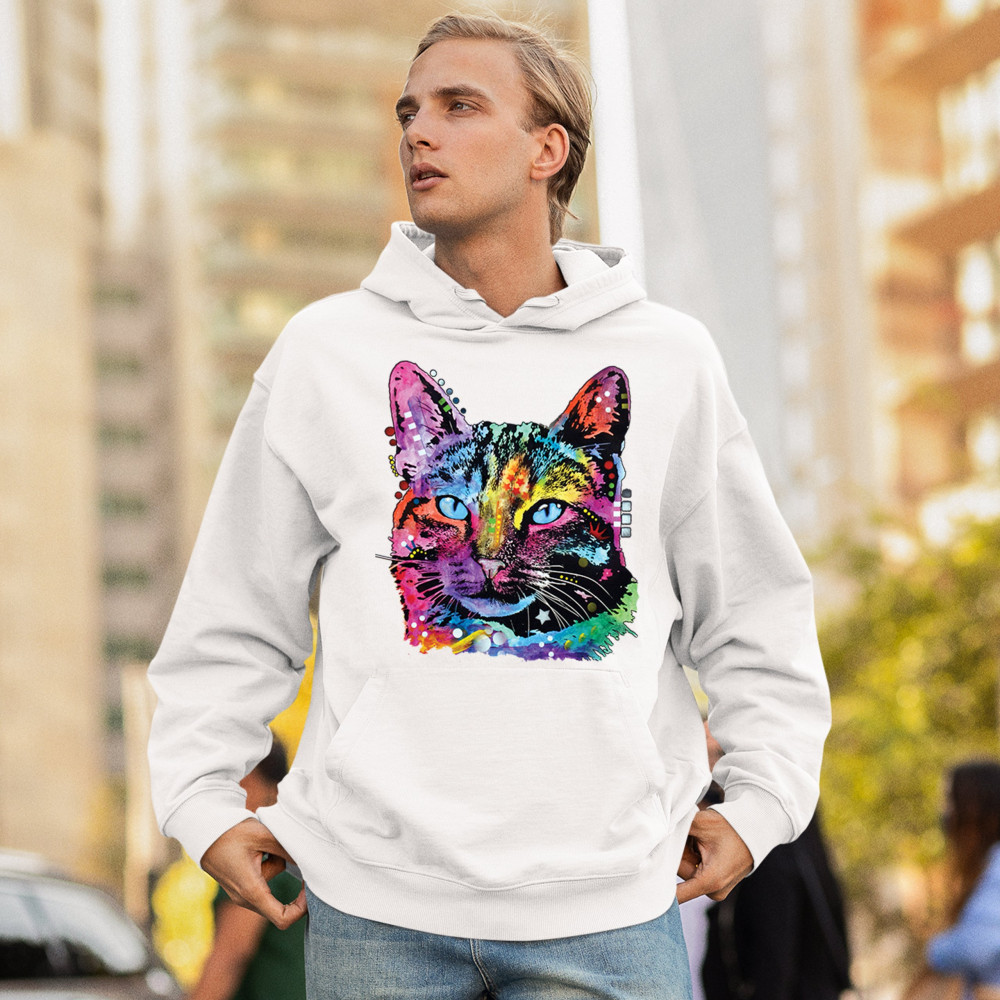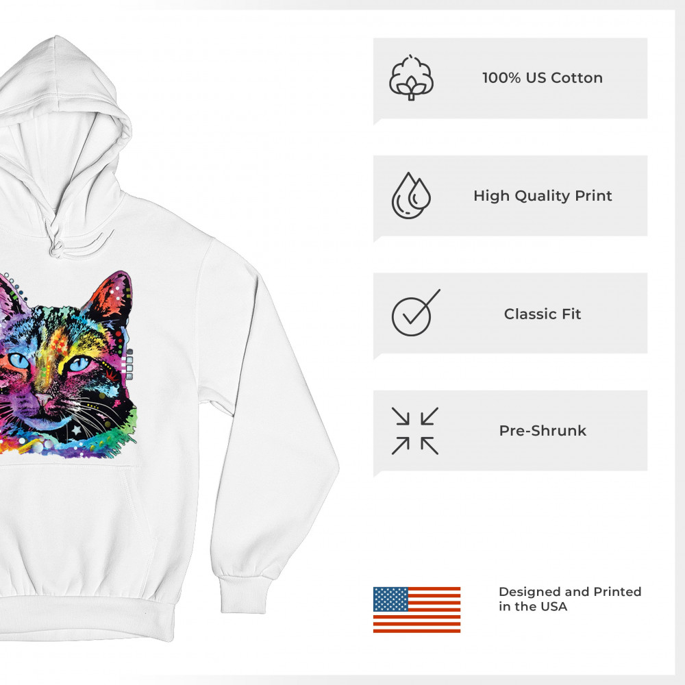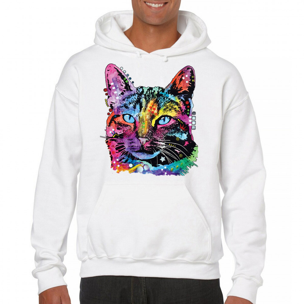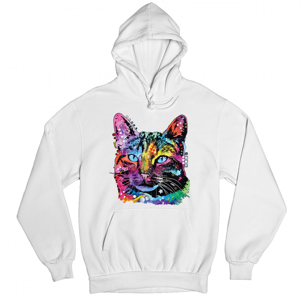 DEAN RUSSO THOUGHTFUL CAT sweatshirt colorful pet kitten eyes hoodie white