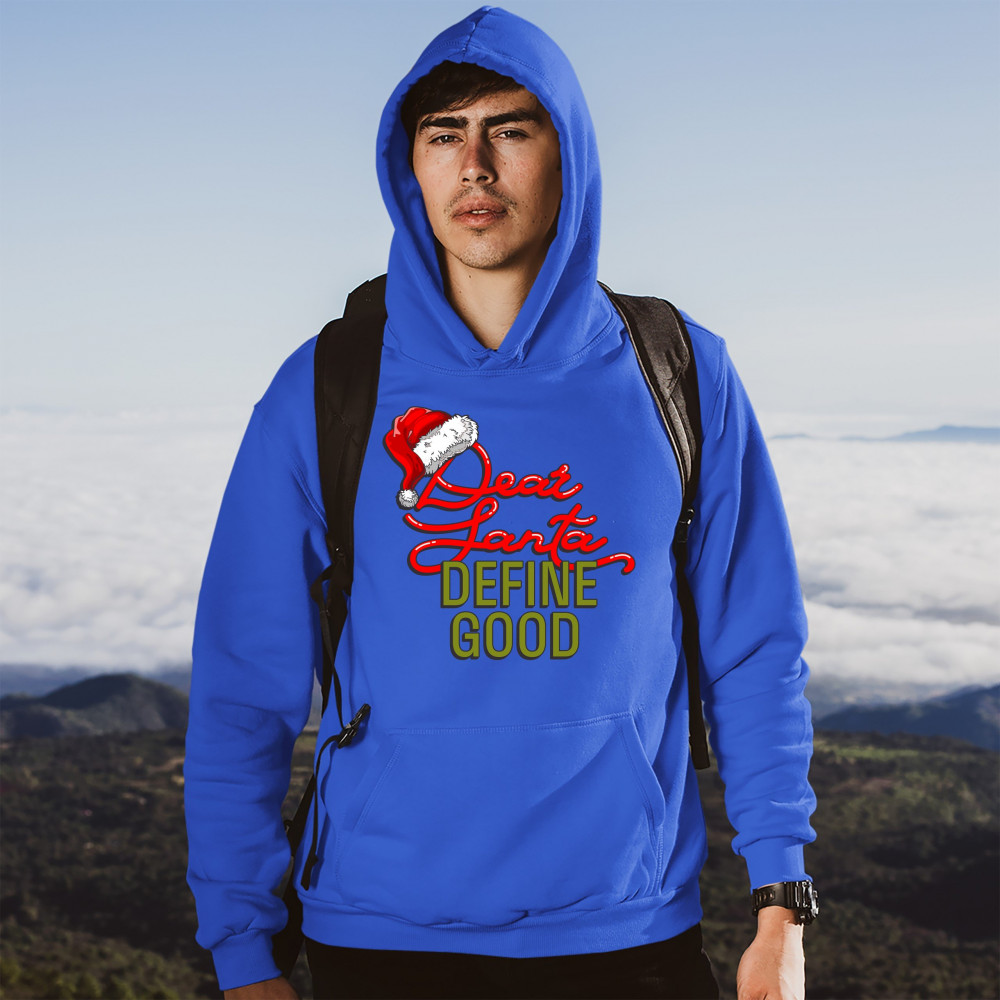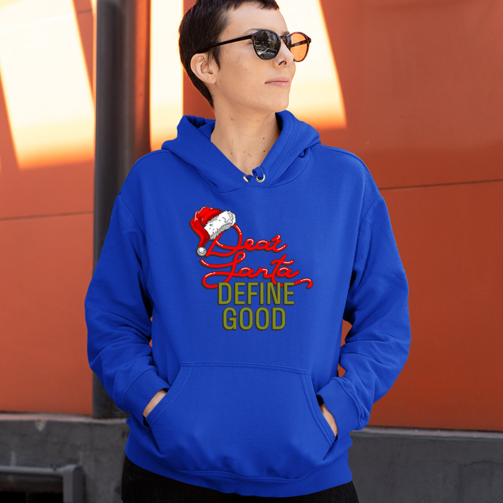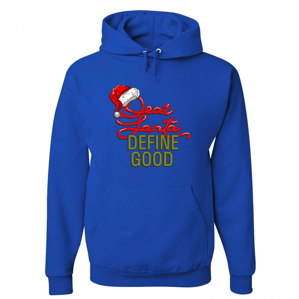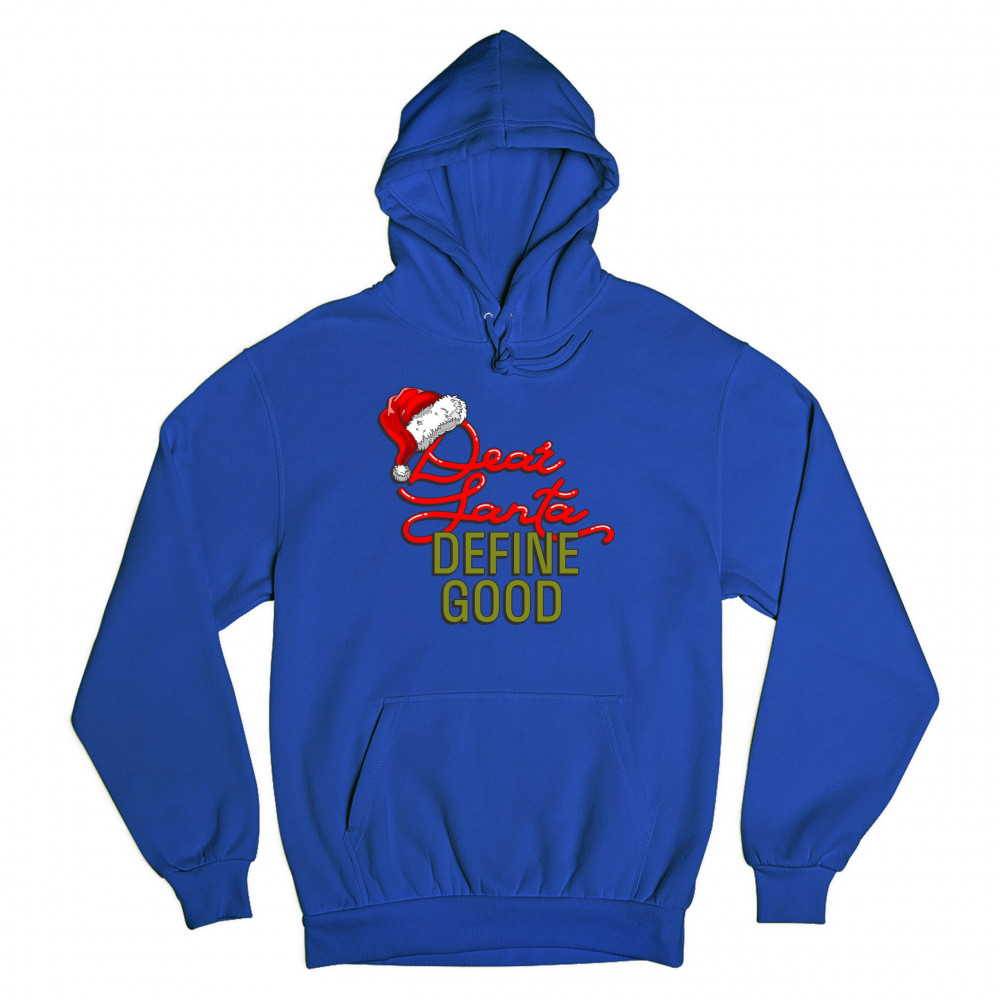DEAR SANTA DEFINE GOOD sweatshirt merry christmas naughty or nice hoodie royal blue