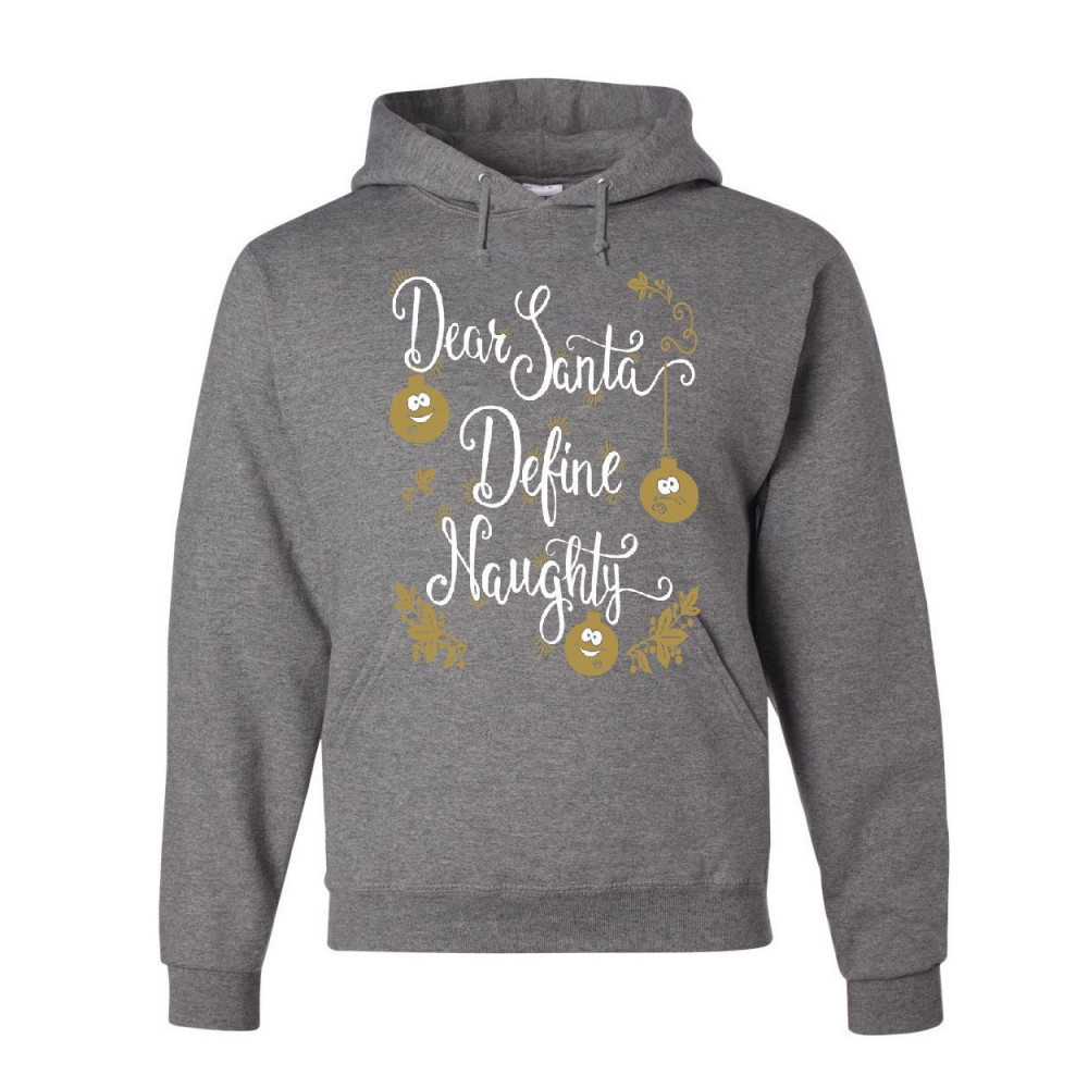 DEAR SANTA DEFINE NAUGHTY hoodie funny christmas xmas holiday sweatshirt gray