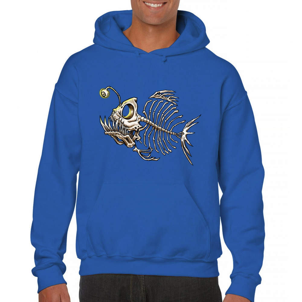 Creepy angler fish skeleton with glowing eye and horror bones. Perfect for sea lovers, divers, Halloween, and marine biology fans.