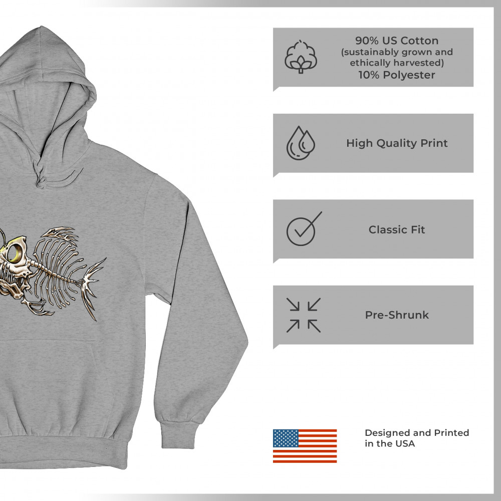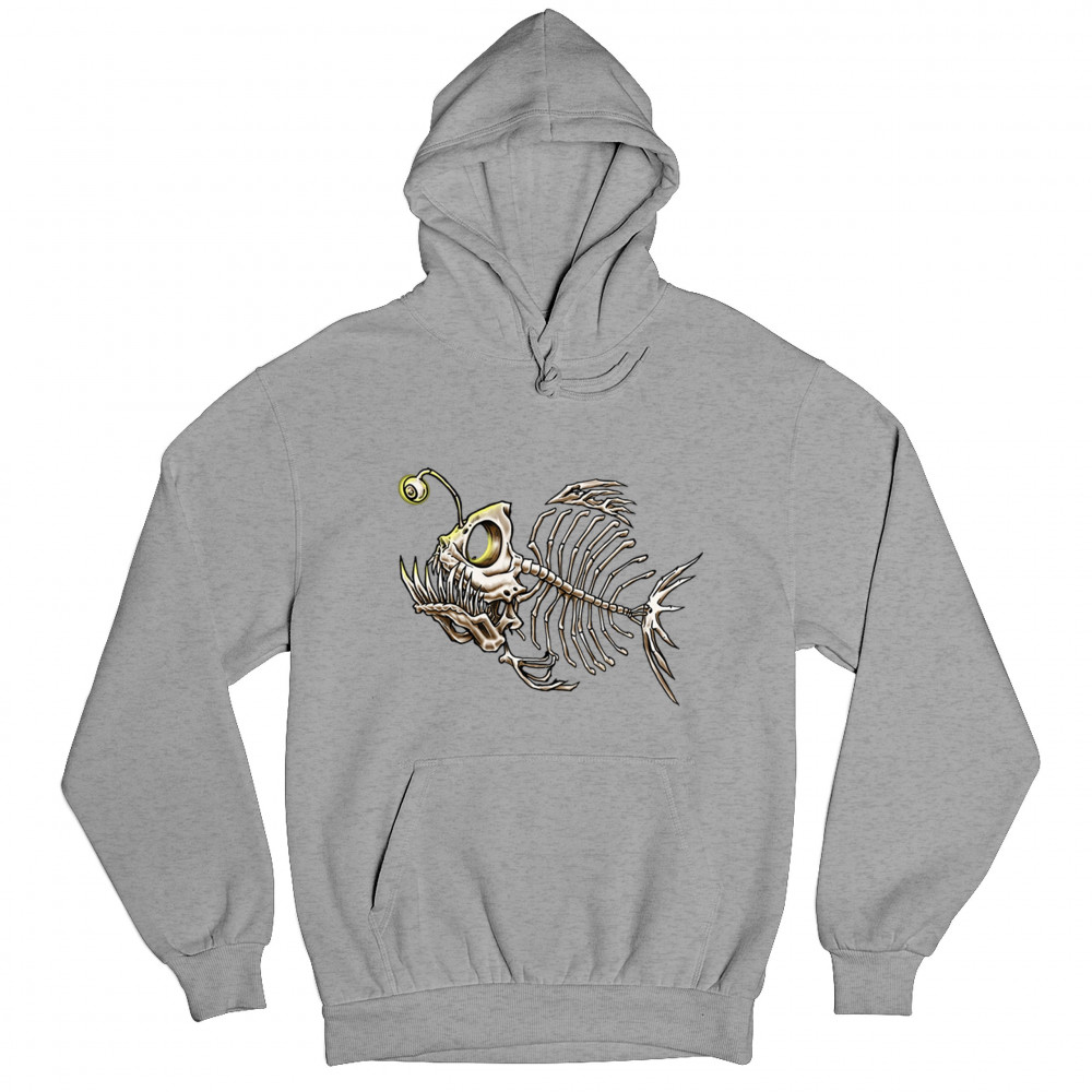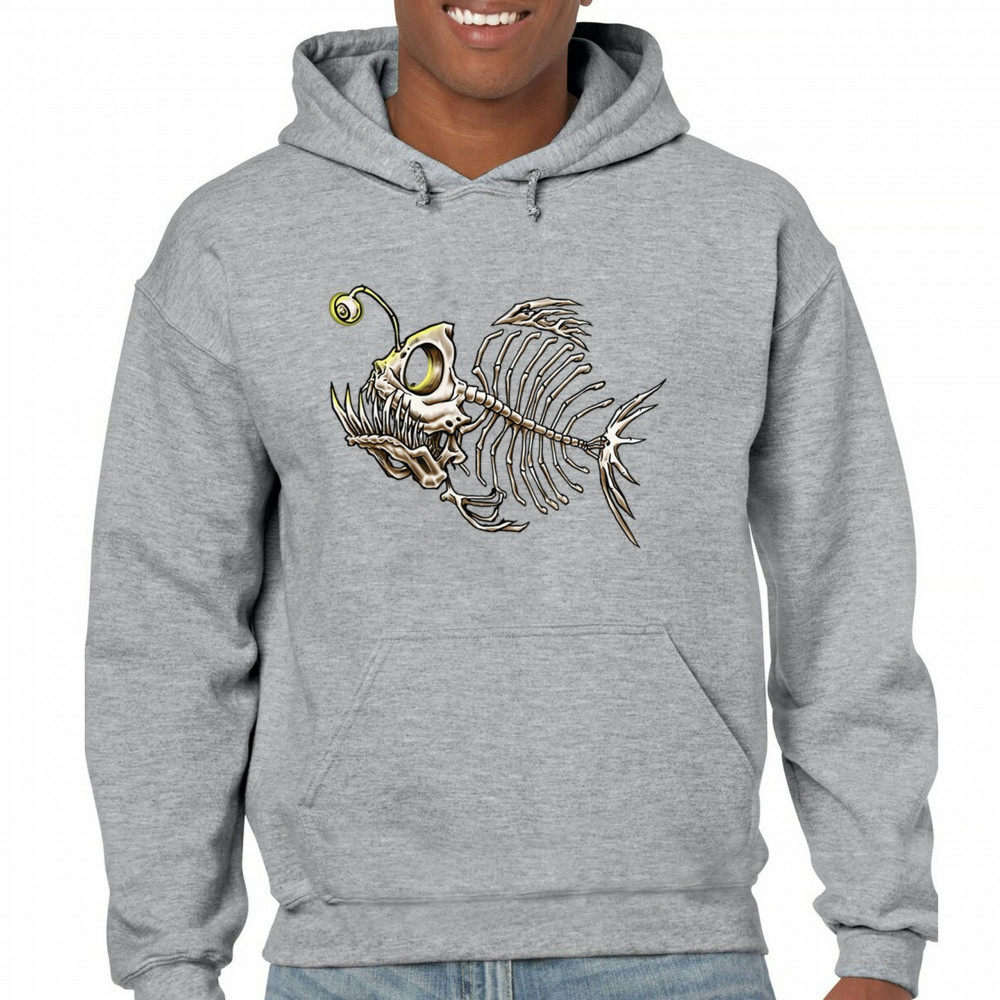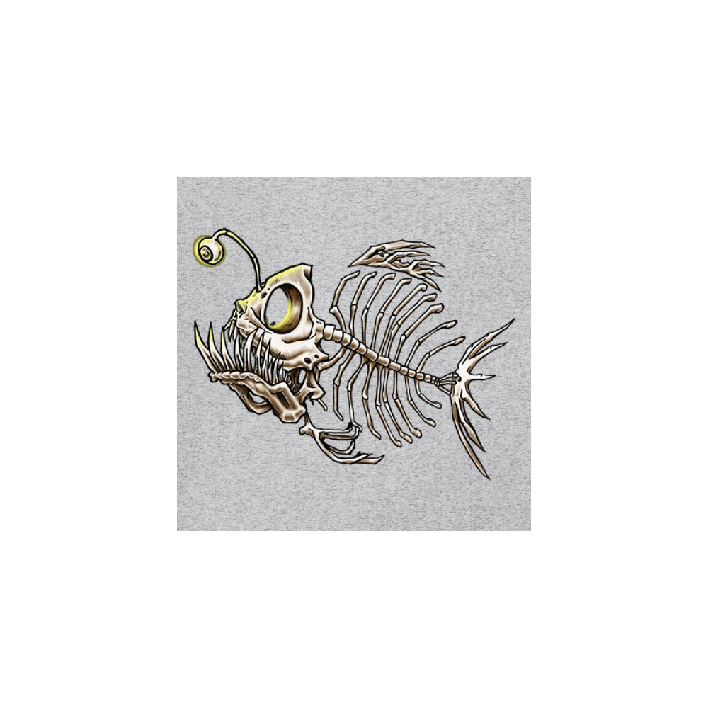 Creepy angler fish skeleton with glowing eye and horror bones. Perfect for sea lovers, divers, Halloween, and marine biology fans.