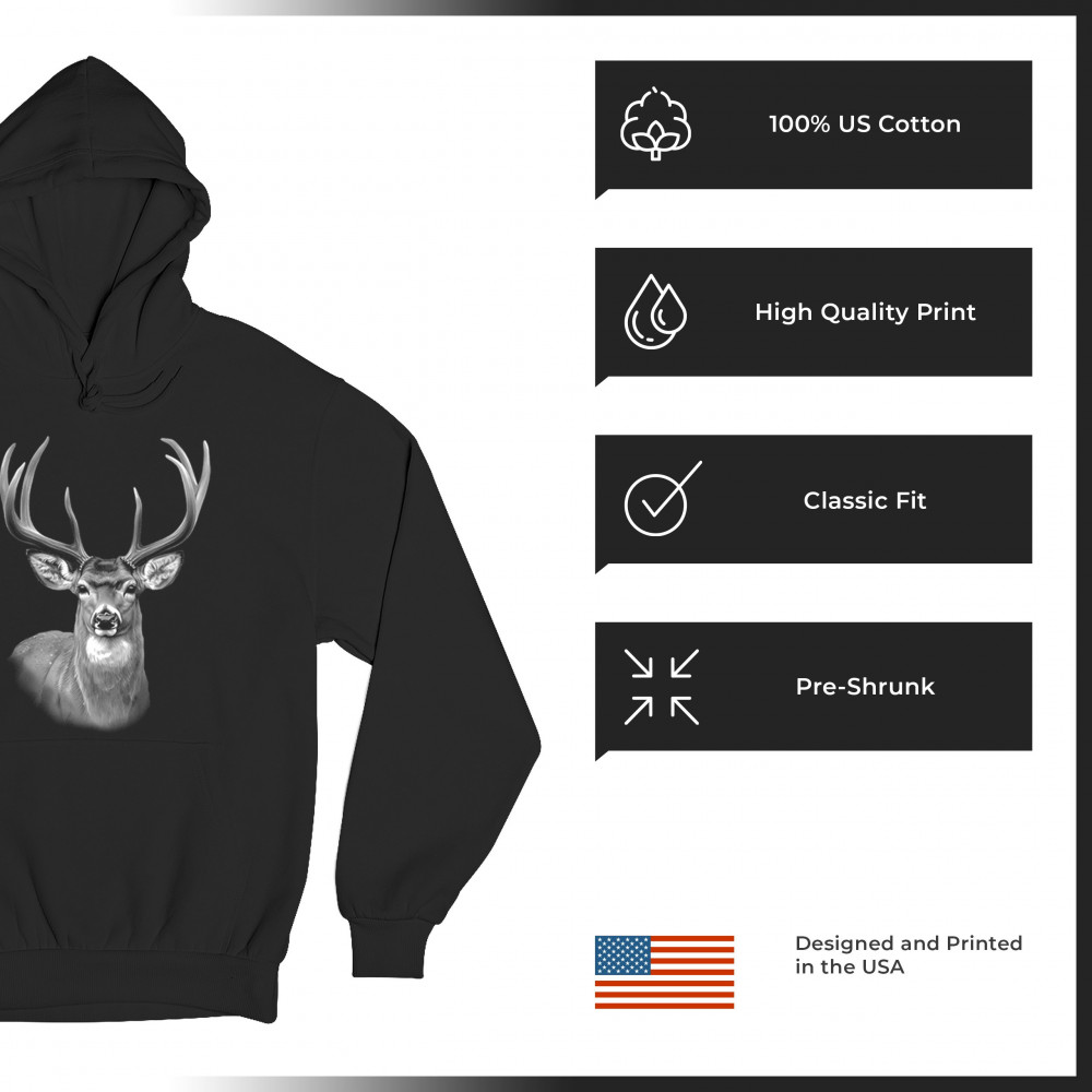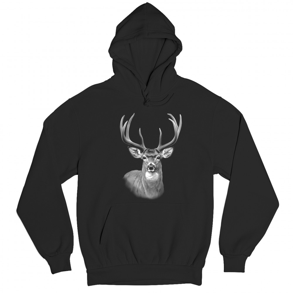 DEER PORTRAIT sweatshirt monochrome buck head forest nature wildlife hoodie black