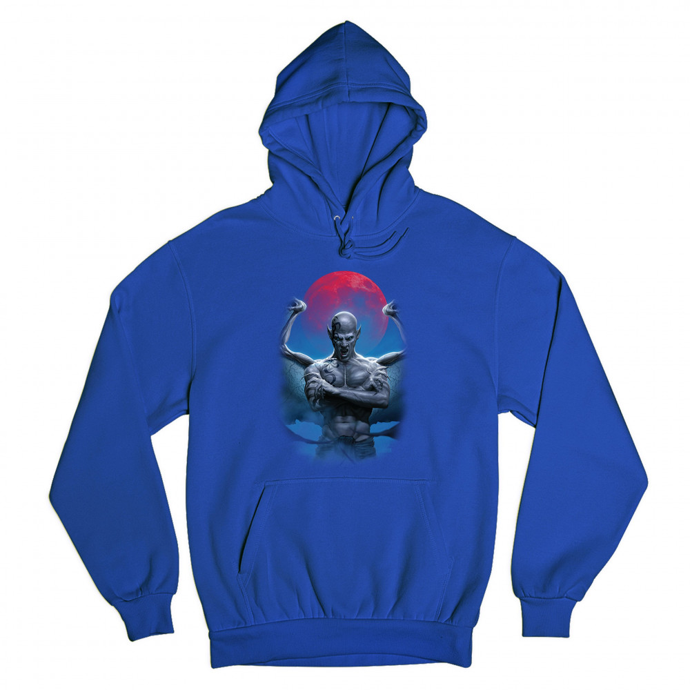 DEMON GARGOYLE sweatshirt blood moon scary halloween monster hoodie royal blue
