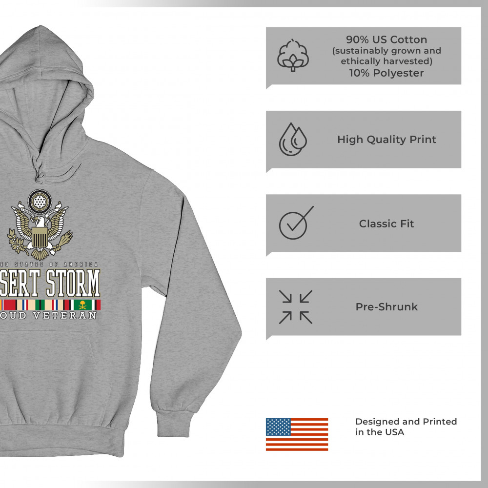 Commemorate Desert Storm with our proud veteran design, celebrating the enduring spirit and sacrifice of U.S. Army warriors and their dedication to duty.