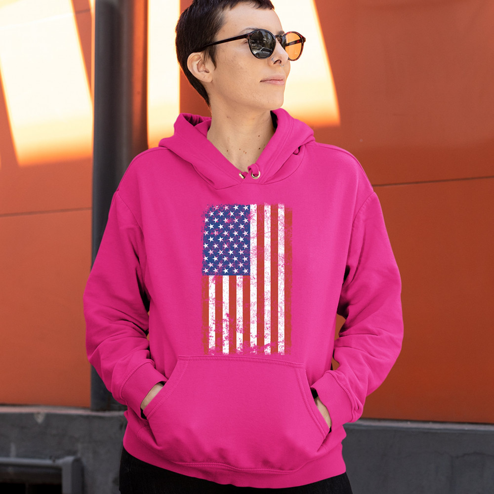 DISTRESSED GRUNGE AMERICAN FLAG sweatshirt vintage 4th of july usa hoodie pink