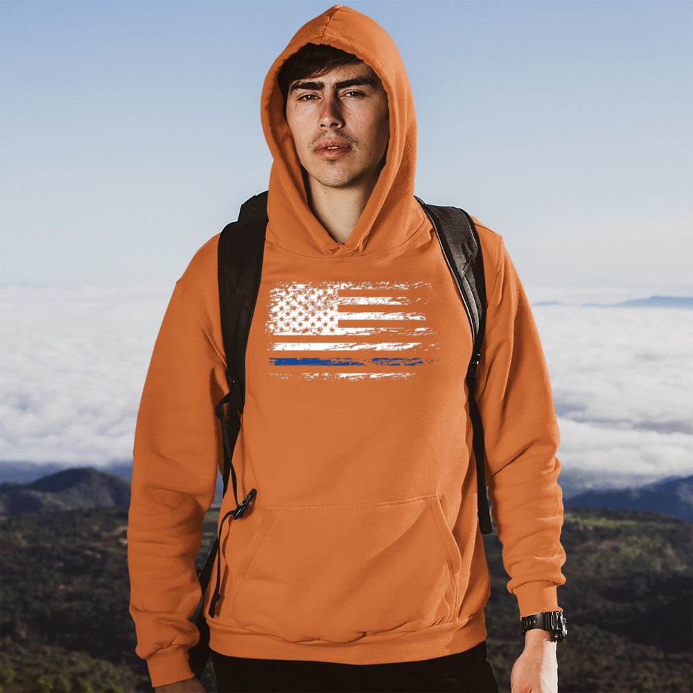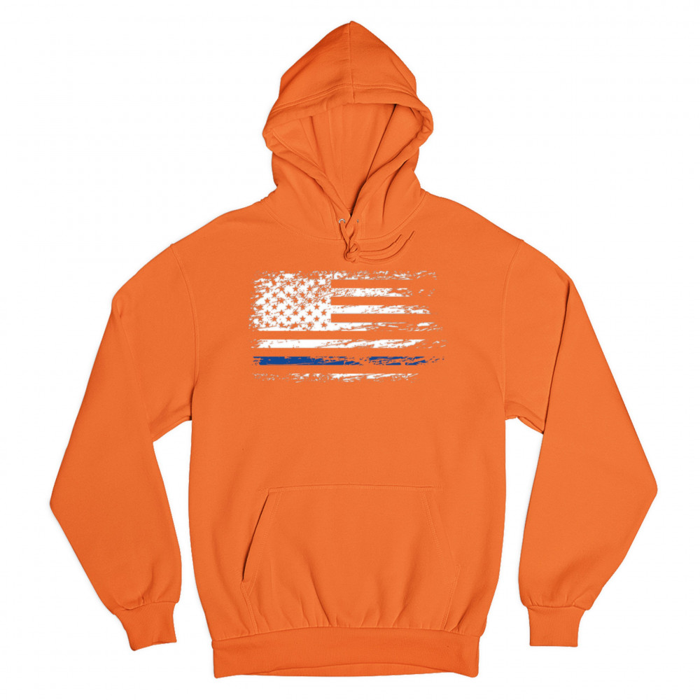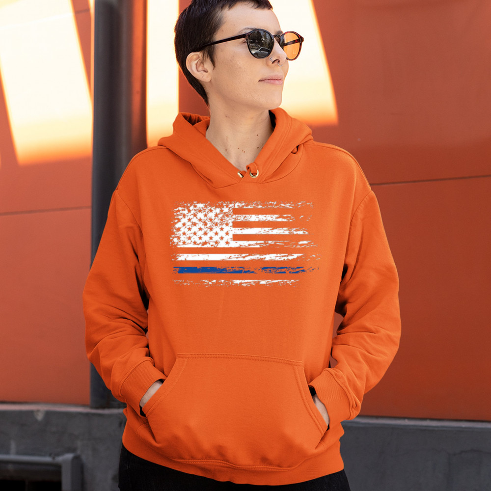 DISTRESSED THIN BLUE LINE AMERICAN FLAG sweatshirt patriotic police hoodie orange