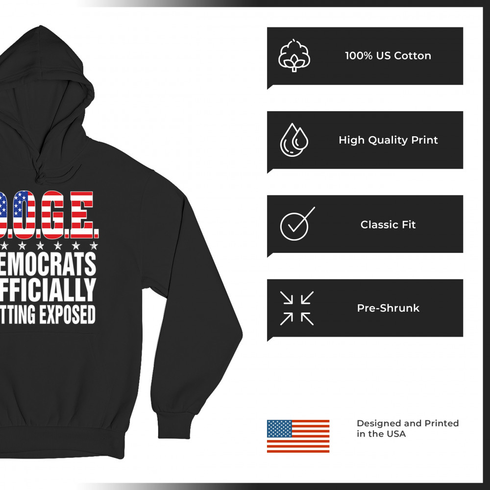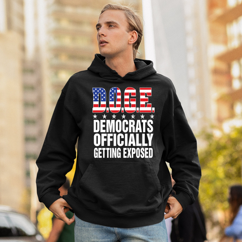 The D.O.G.E. Democrats Officially Getting Exposed design features bold text packed with patriotic flair and political edge. Stars-and-stripes fill the acronym while the clean layout delivers a direct anti-liberal message. Ideal for conservatives, libertarians, and free-speech defenders at rallies, campaign events, or daily wear.