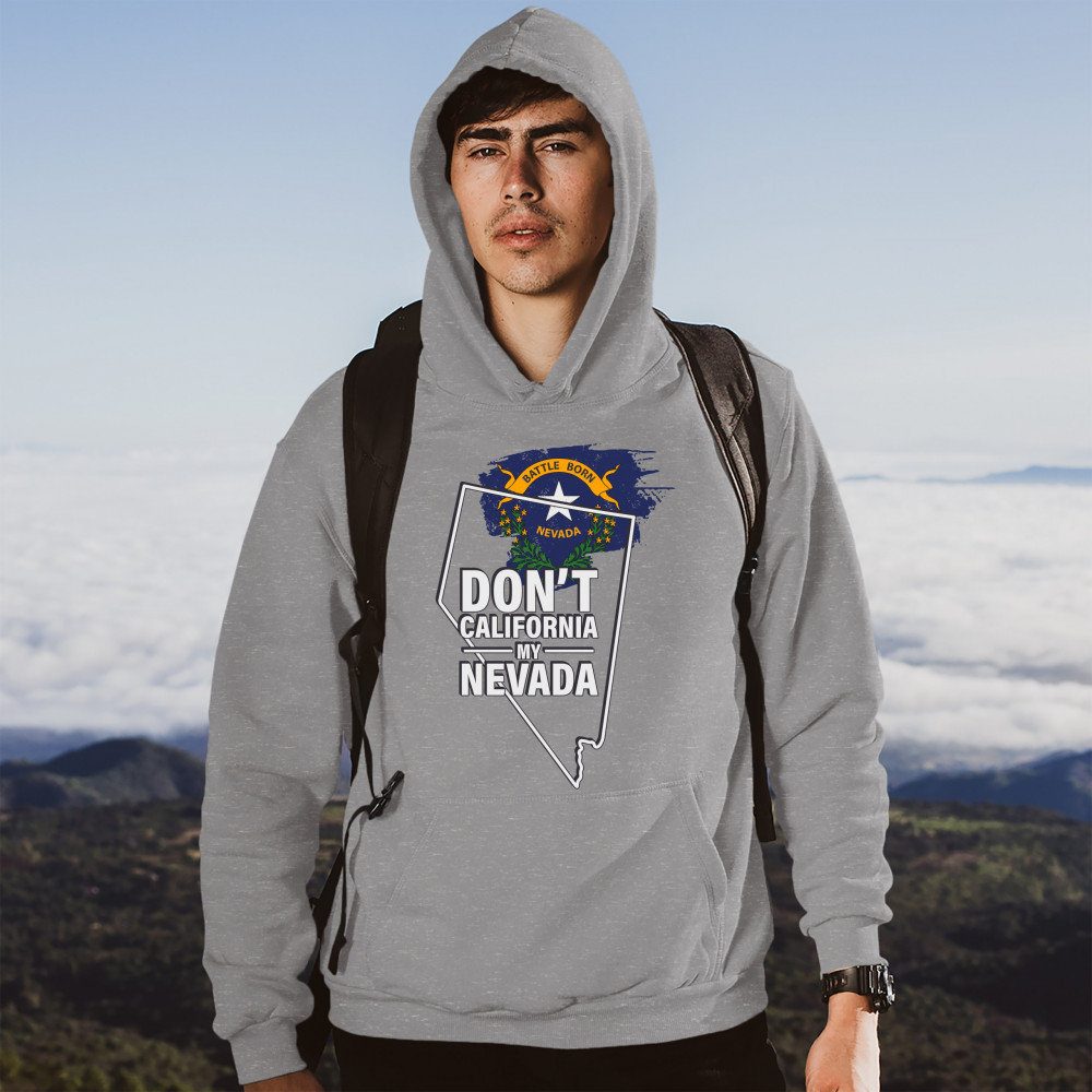 A political print featuring a silhouette of the state of Nevada and it's flag on the inside. The print says: "Don't California my Nevada". A great choice for anyone who is concerned for a huge number of Californians moving to their beloved state.