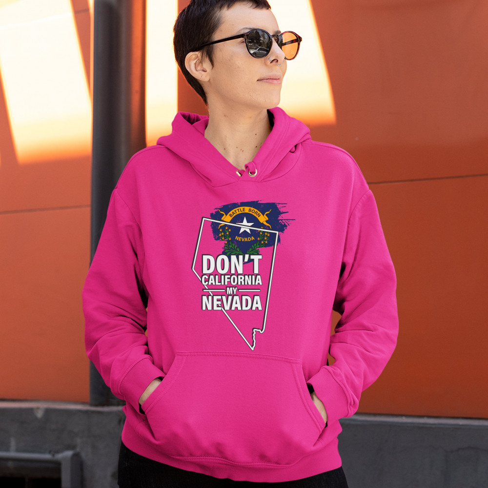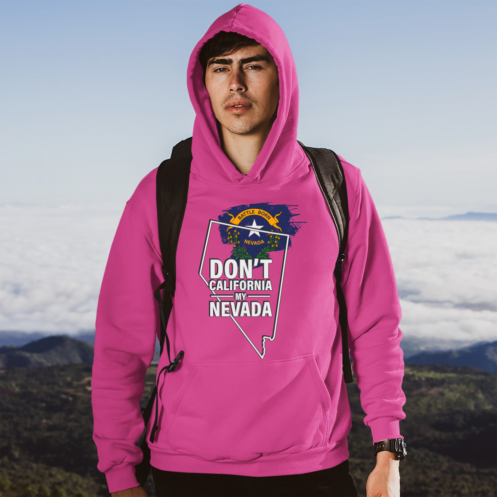 A political print featuring a silhouette of the state of Nevada and it's flag on the inside. The print says: "Don't California my Nevada". A great choice for anyone who is concerned for a huge number of Californians moving to their beloved state.