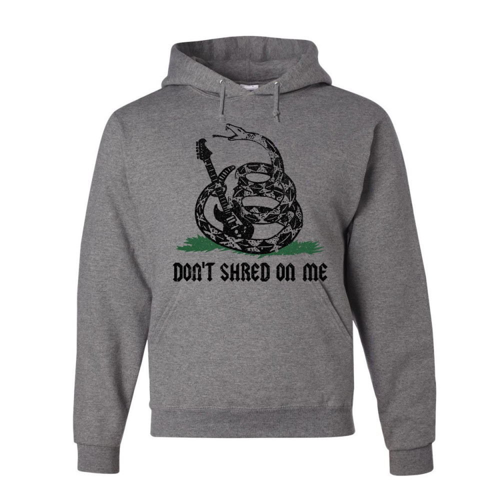 DON'T SHRED ON ME hoodie gadsden flag snake guitar rock music sweatshirt gray