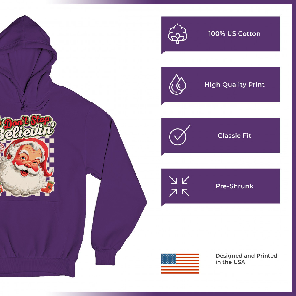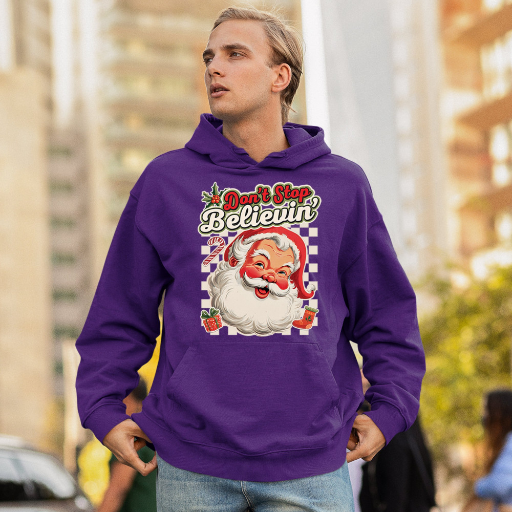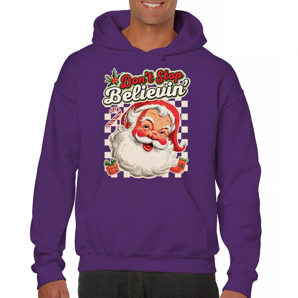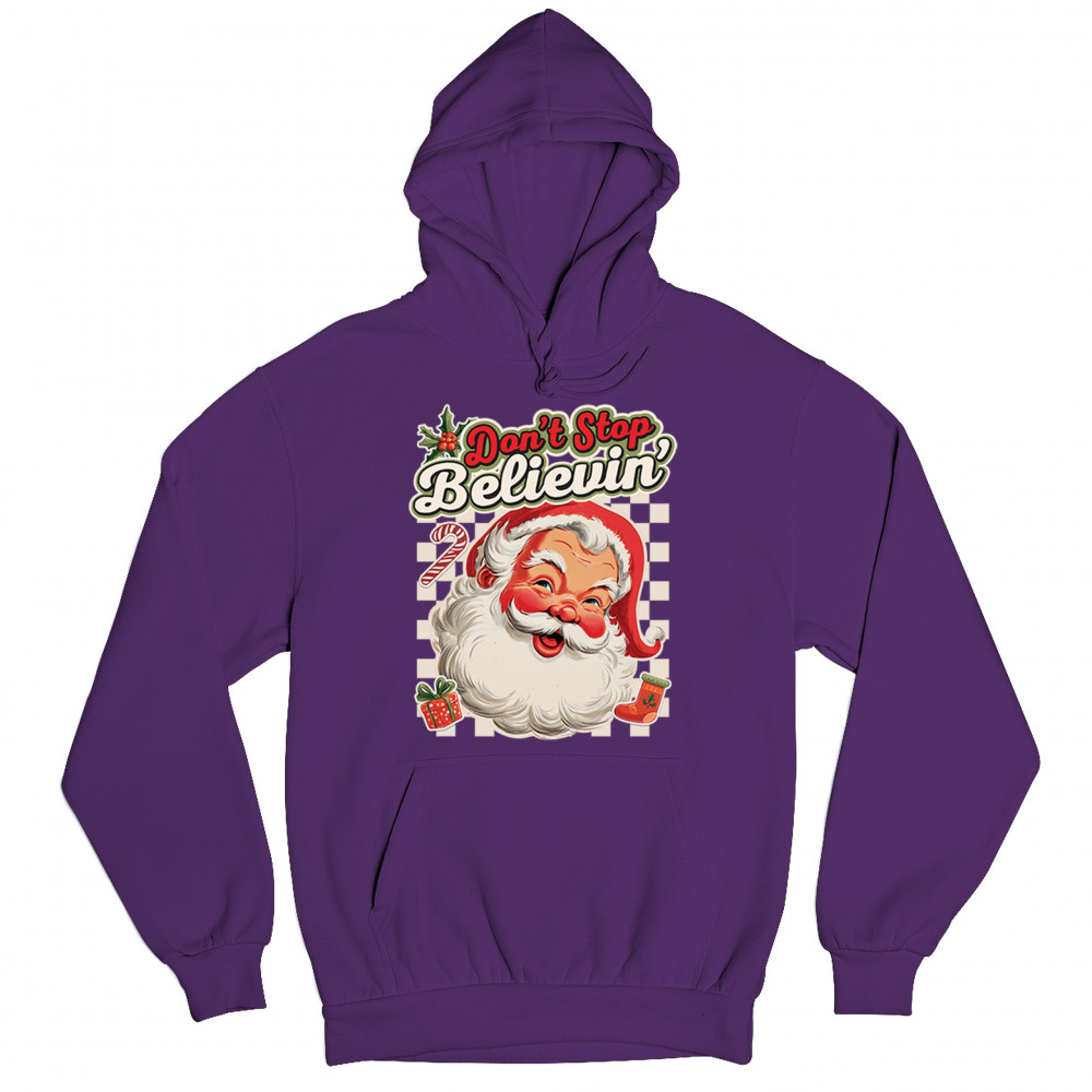 DON'T STOP BELIEVING SANTA CLAUS unisex hoodie merry christmas bells purple