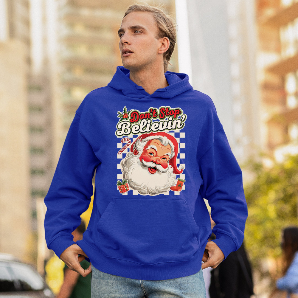 Spread holiday cheer with this “Don’t Stop Believing†Santa Claus shirt that blends classic Christmas spirit with cozy winter charm. Perfect for festive parties, family gatherings, or relaxing by the fire, this design captures Jingle Bells joy, Merry Xmas fun, Santa Claus magic, Reindeer delight, Rudolph glow, Snowman charm, and Christmas tree style for the perfect seasonal outfit.