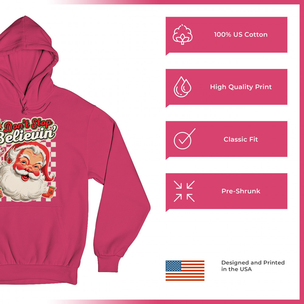 Spread holiday cheer with this “Don’t Stop Believing†Santa Claus shirt that blends classic Christmas spirit with cozy winter charm. Perfect for festive parties, family gatherings, or relaxing by the fire, this design captures Jingle Bells joy, Merry Xmas fun, Santa Claus magic, Reindeer delight, Rudolph glow, Snowman charm, and Christmas tree style for the perfect seasonal outfit.