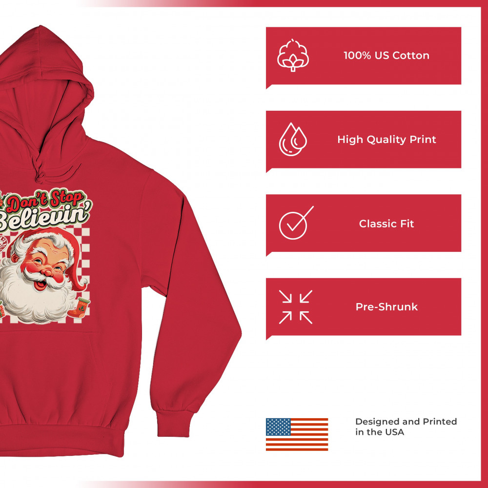 Spread holiday cheer with this “Don’t Stop Believing†Santa Claus shirt that blends classic Christmas spirit with cozy winter charm. Perfect for festive parties, family gatherings, or relaxing by the fire, this design captures Jingle Bells joy, Merry Xmas fun, Santa Claus magic, Reindeer delight, Rudolph glow, Snowman charm, and Christmas tree style for the perfect seasonal outfit.