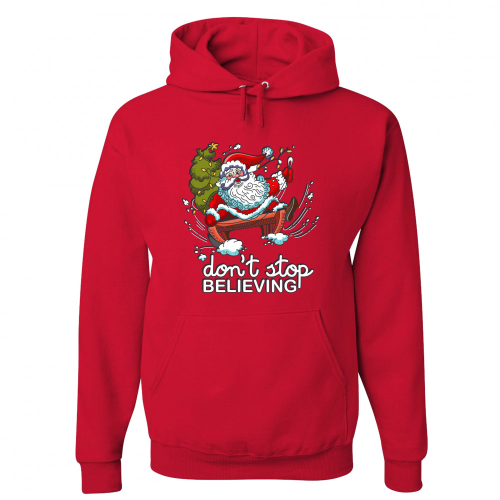 DON'T STOP BELIEVING sweatshirt christmas holiday spirit santa claus hoodie red