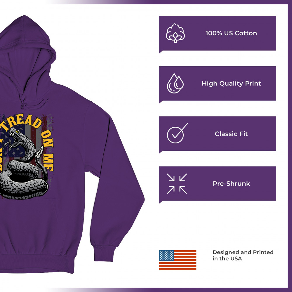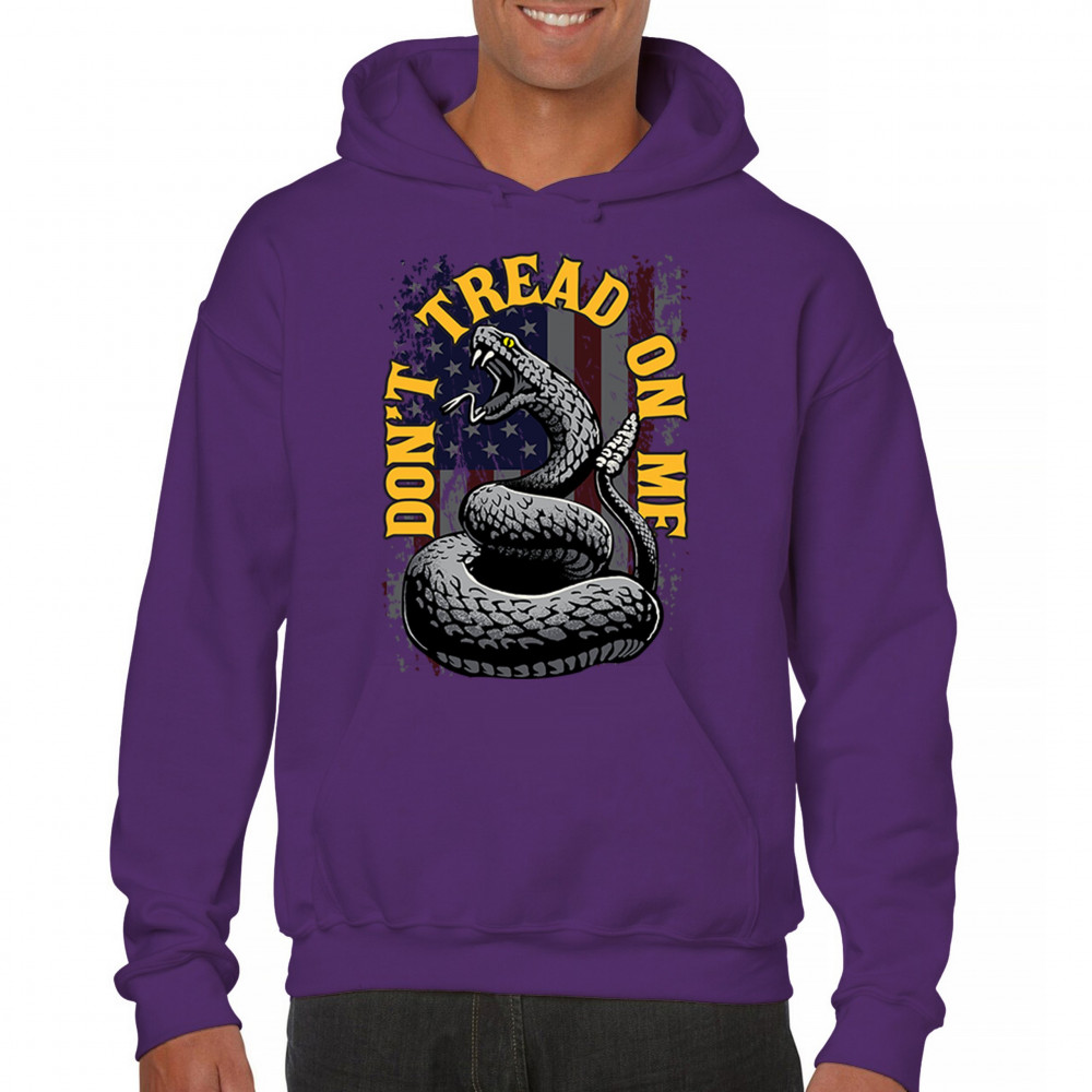Bold "Don't Tread on Me" design with snake and American flag. Ideal for patriots. Show your love for freedom and independence.