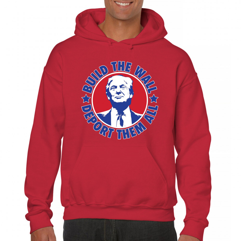 Showcase your unwavering support with a bold design that champions America first. Featuring the "Build the Wall Deport Them All Trump 2024" message, this piece is a must-have for conservatives, symbolizing trust in God over government, and a commitment to never surrender. Adorned with the American flag and a call to rebelution, it's perfect for any Trump supporter ready to stand against the tide.