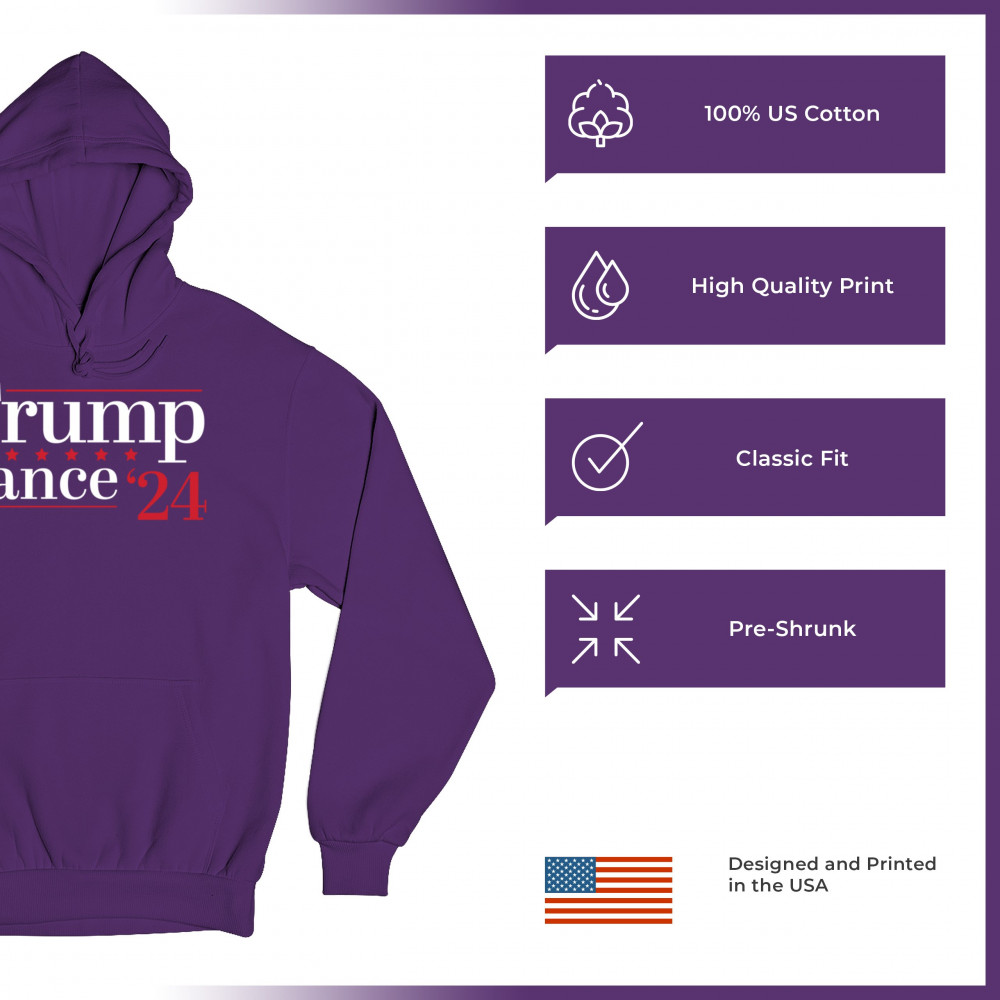 Support Trump-Vance 2024 with this bold design featuring the "Make America Great Again" slogan and the American flag. Perfect for rallies and conservative events.