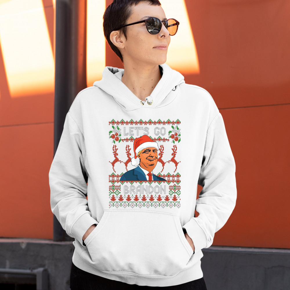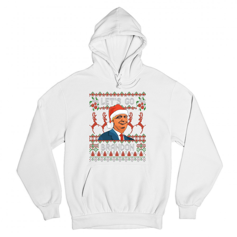 DONALD TRUMP LET'S GO BRANDON sweatshirt christmas xmas ugly sweater hoodie white