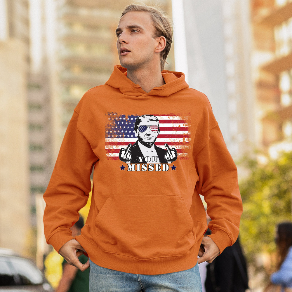 Embrace the spirit of patriotism and resilience with this powerful design showcasing Donald Trump in bold American flag sunglasses. Ideal for Trump rallies, political gatherings, and other patriotic events, this graphic is perfect for conservatives and Republicans alike. Show your unwavering support for Trump and the belief in making America great again. This striking design is not only a great addition to your wardrobe but also an excellent gift for fellow supporters. Wear it with pride and join the movement today.