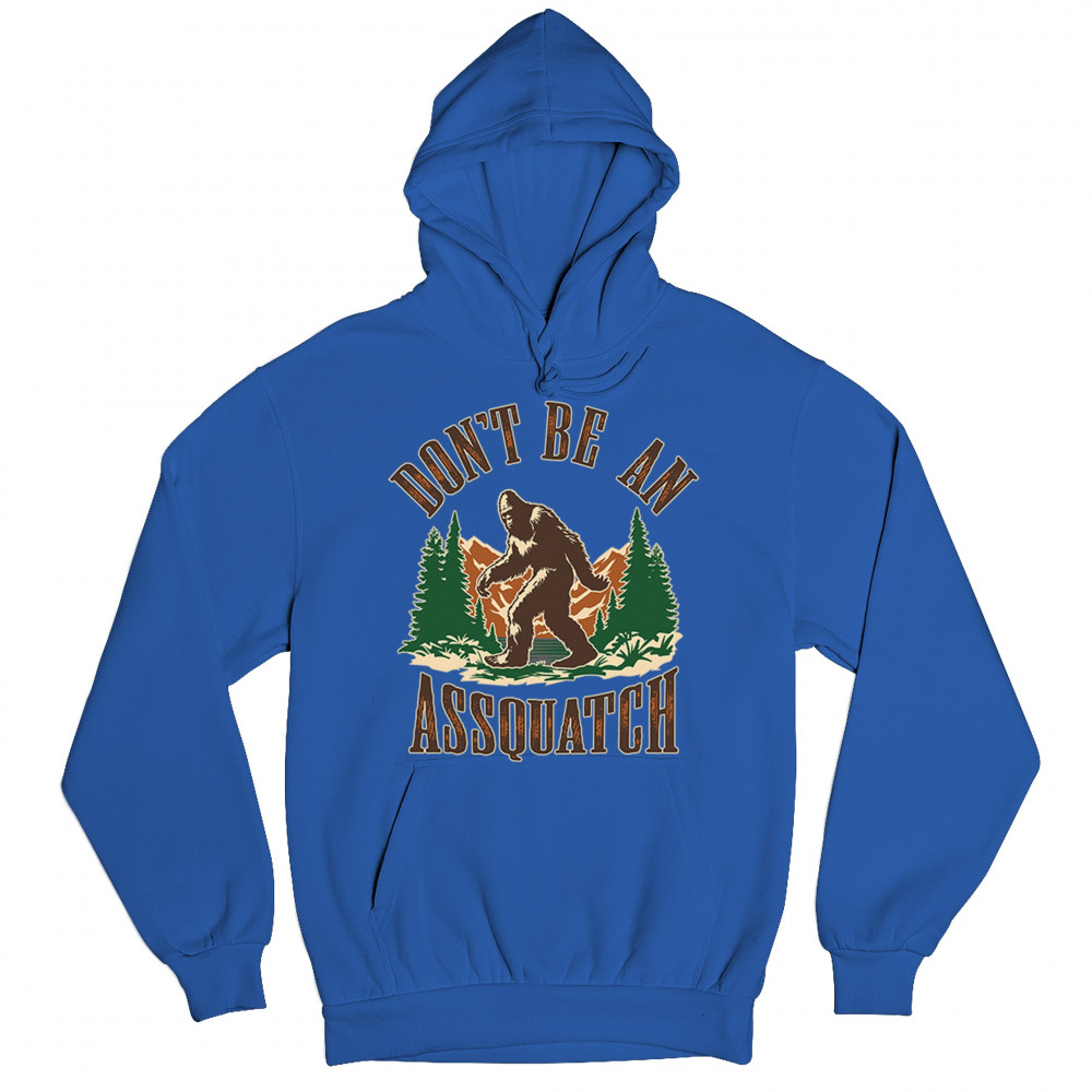 DONT BE AN ASSQUATCH sweatshirt bigfoot sarcasm funny sasquatch humor hoodie royal blue