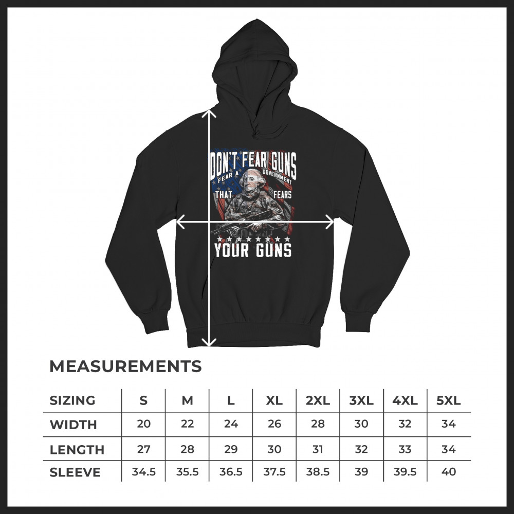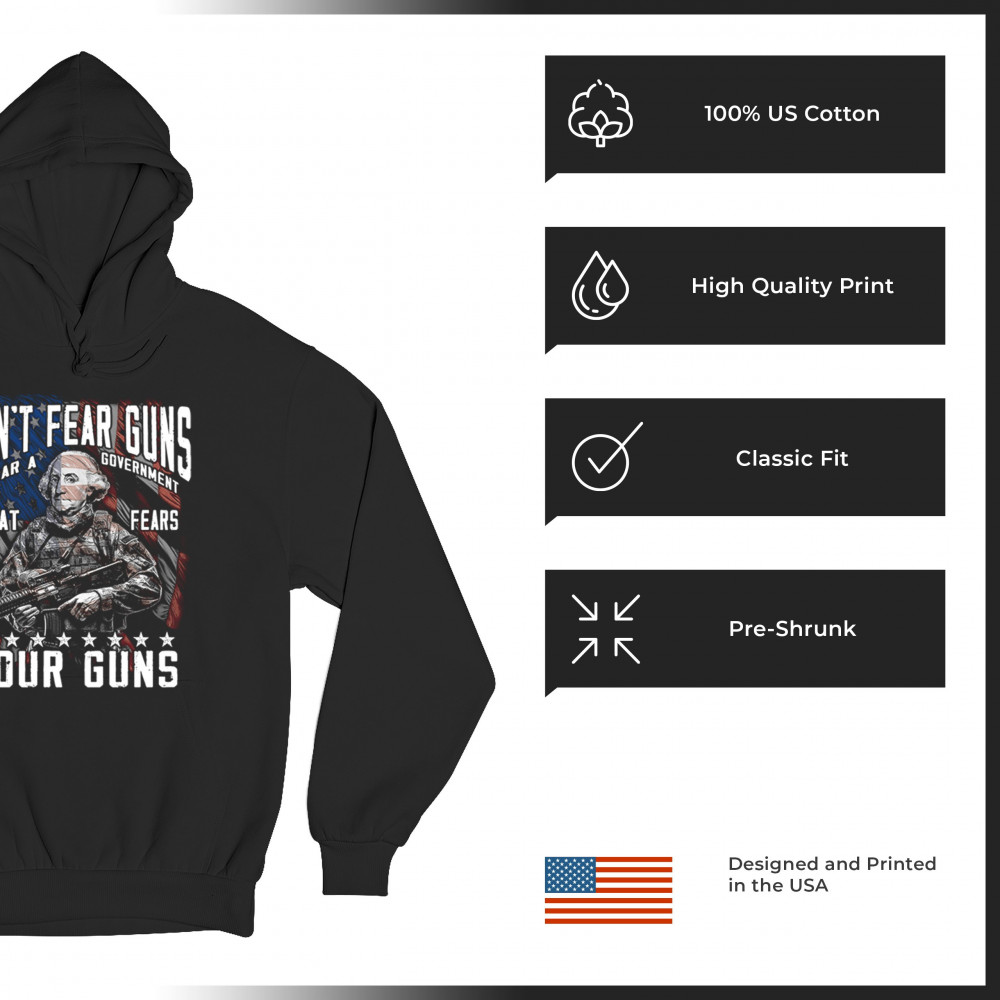DONT FEAR GUNS sweatshirt tactical patriot washington 2nd amendment hoodie black
